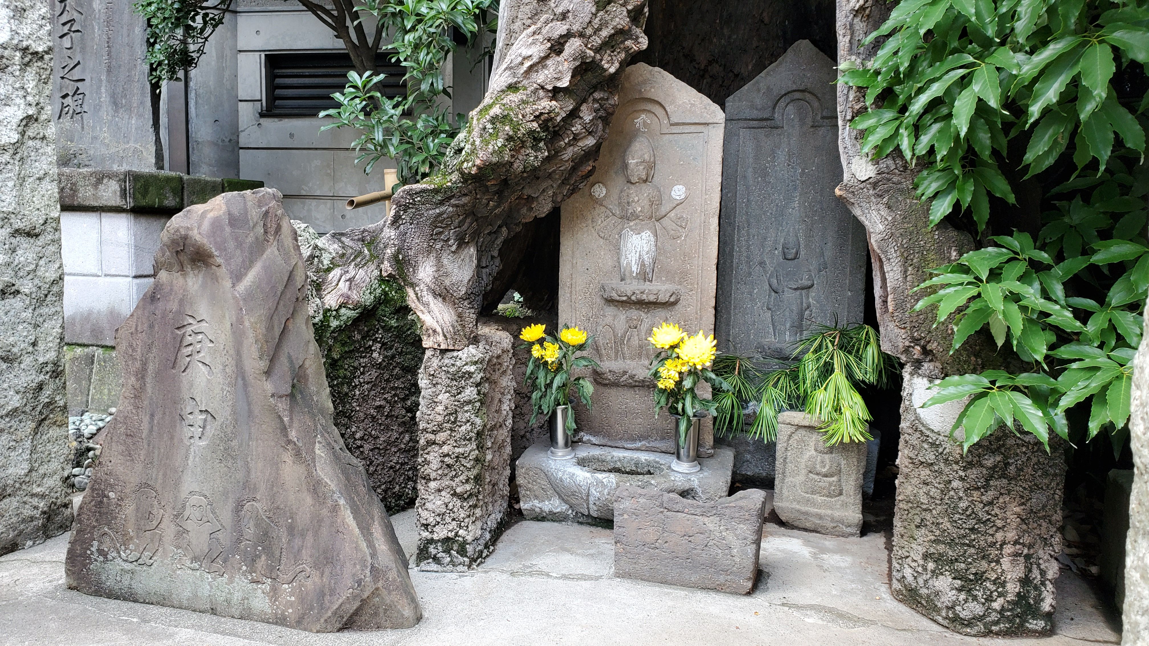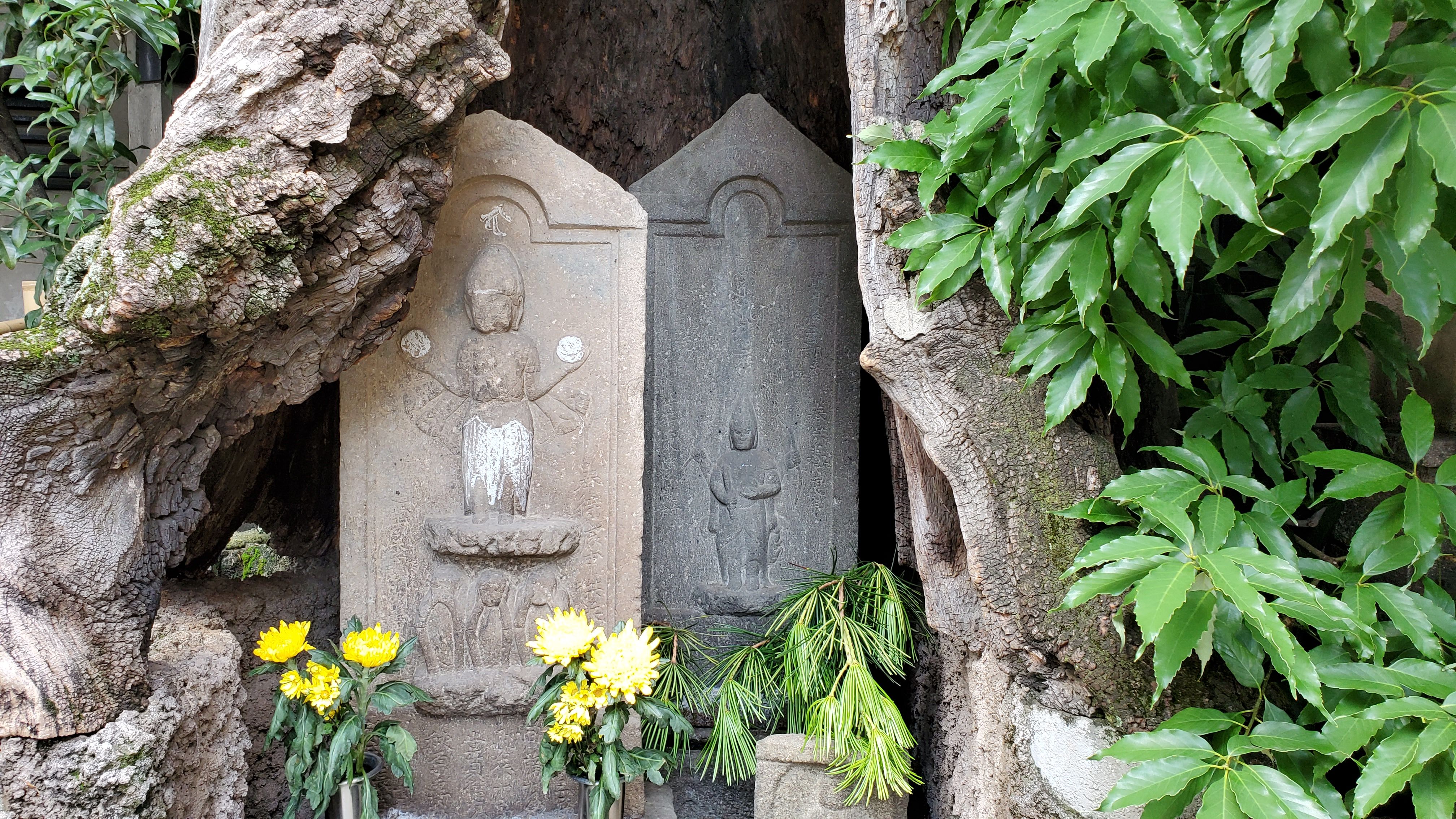 幹の内部に2基の江戸前期庚申塔……いつからこのような形で安置されているかは分からないけど、今日まで長いこと道行く人々の安全を見守ってきたことでしょう。そして明日からも……