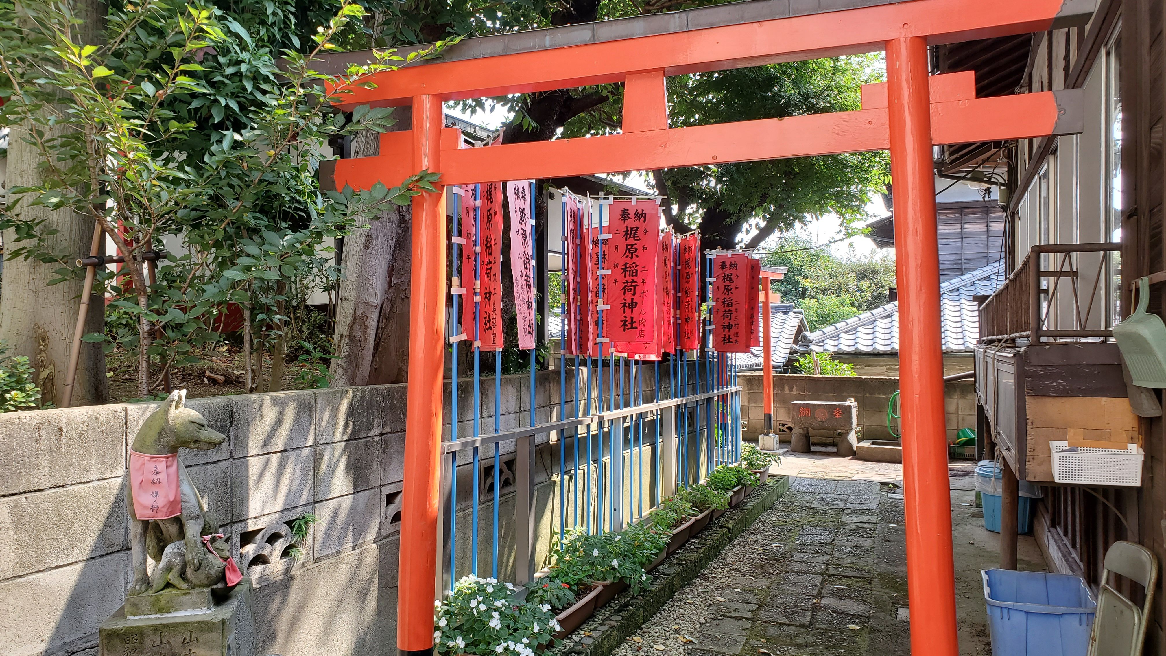 梶原兵三景時が建立した萬福寺に勧請した稲荷神社が梶原屋敷内~来福寺に移されたと言うこと。現在は住宅で分断されているが、当地南側が来福寺と梶原氏館跡となっている。来福寺はこの後お寄りしたけど、コロナ禍で残念な結果だった。