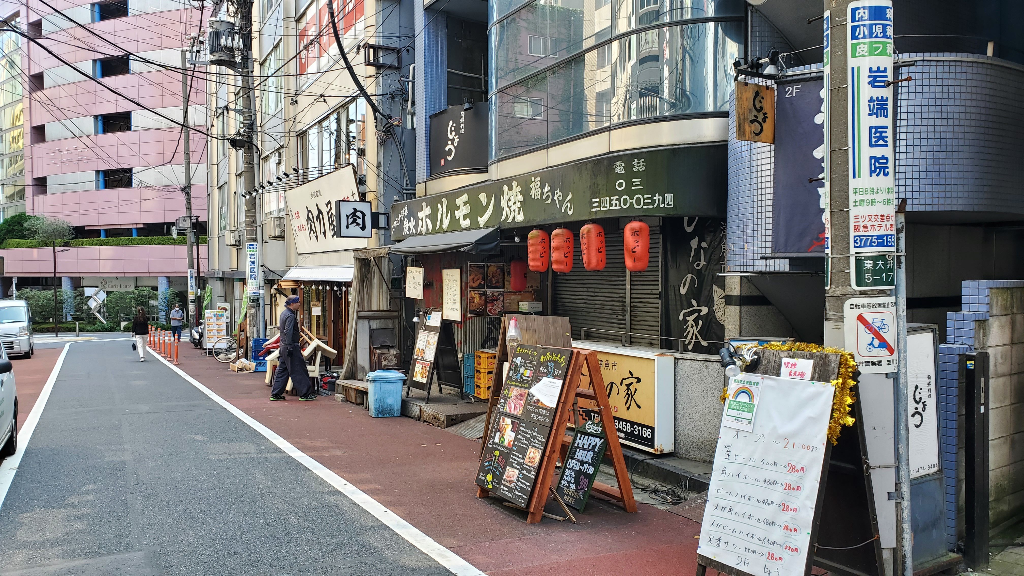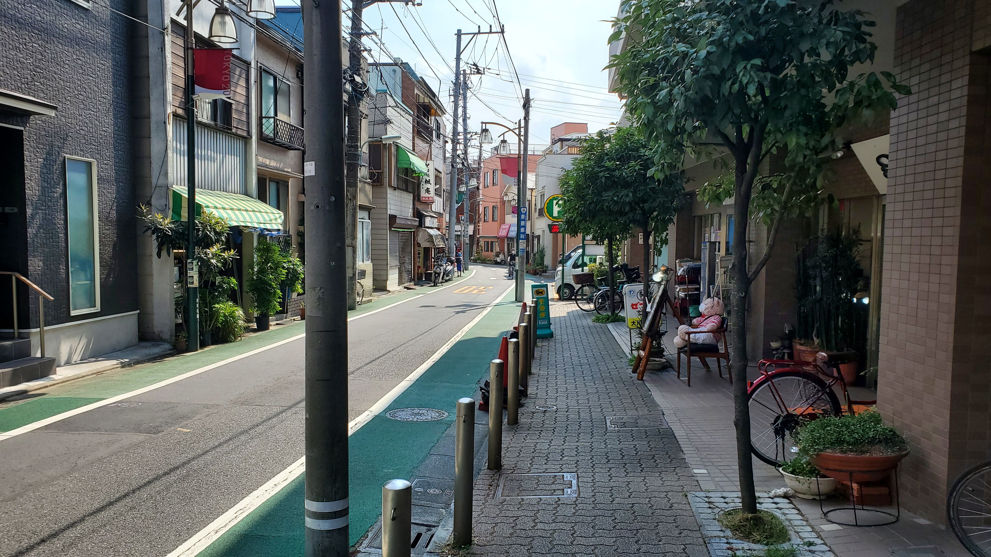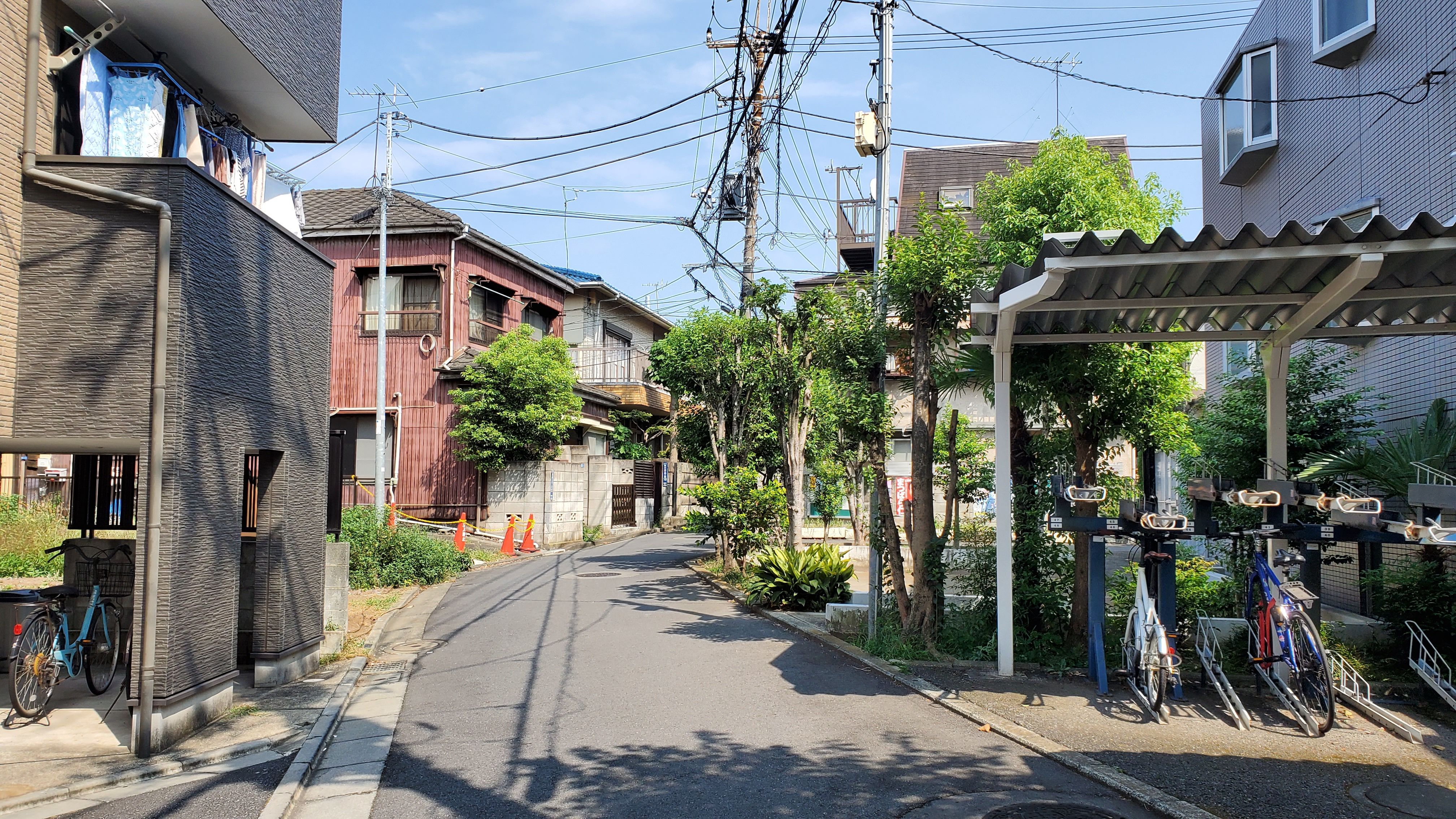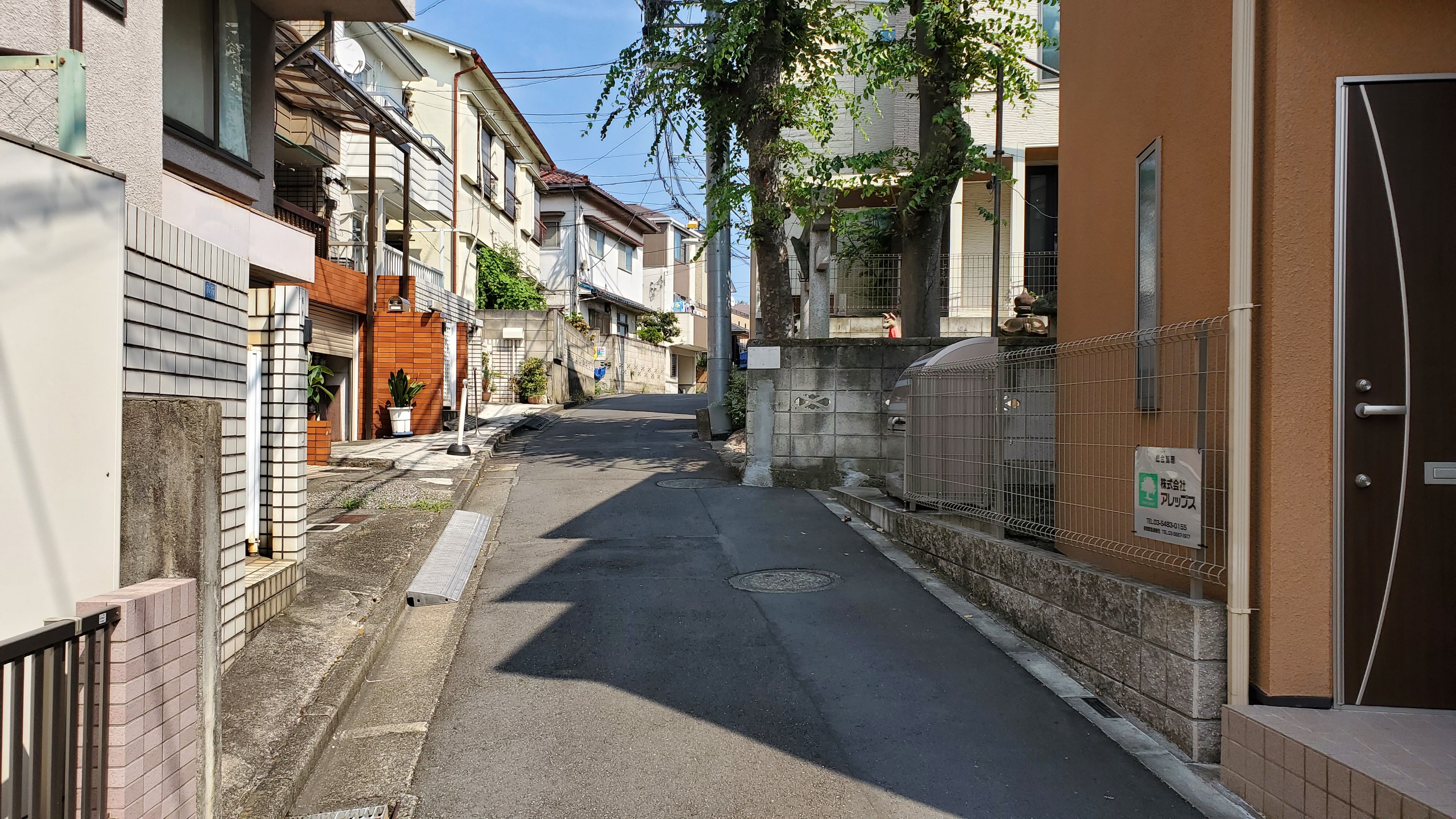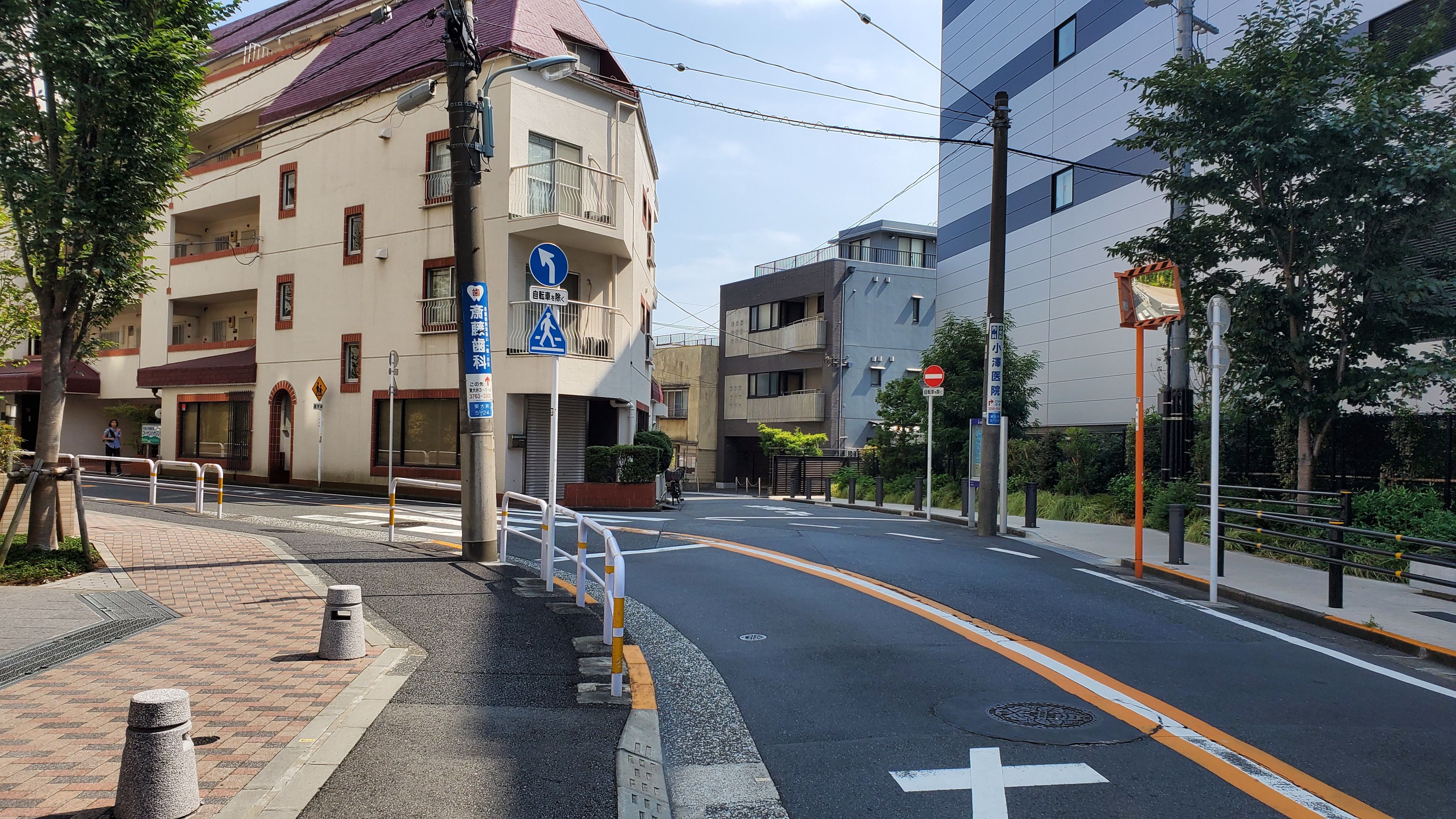 見晴らし通り……って言うらしい。短い区間だけ歩道拡張。左方向は旧東海道に沿って鮫洲運河が近いから、昔は海が充分見渡せたでしょう。