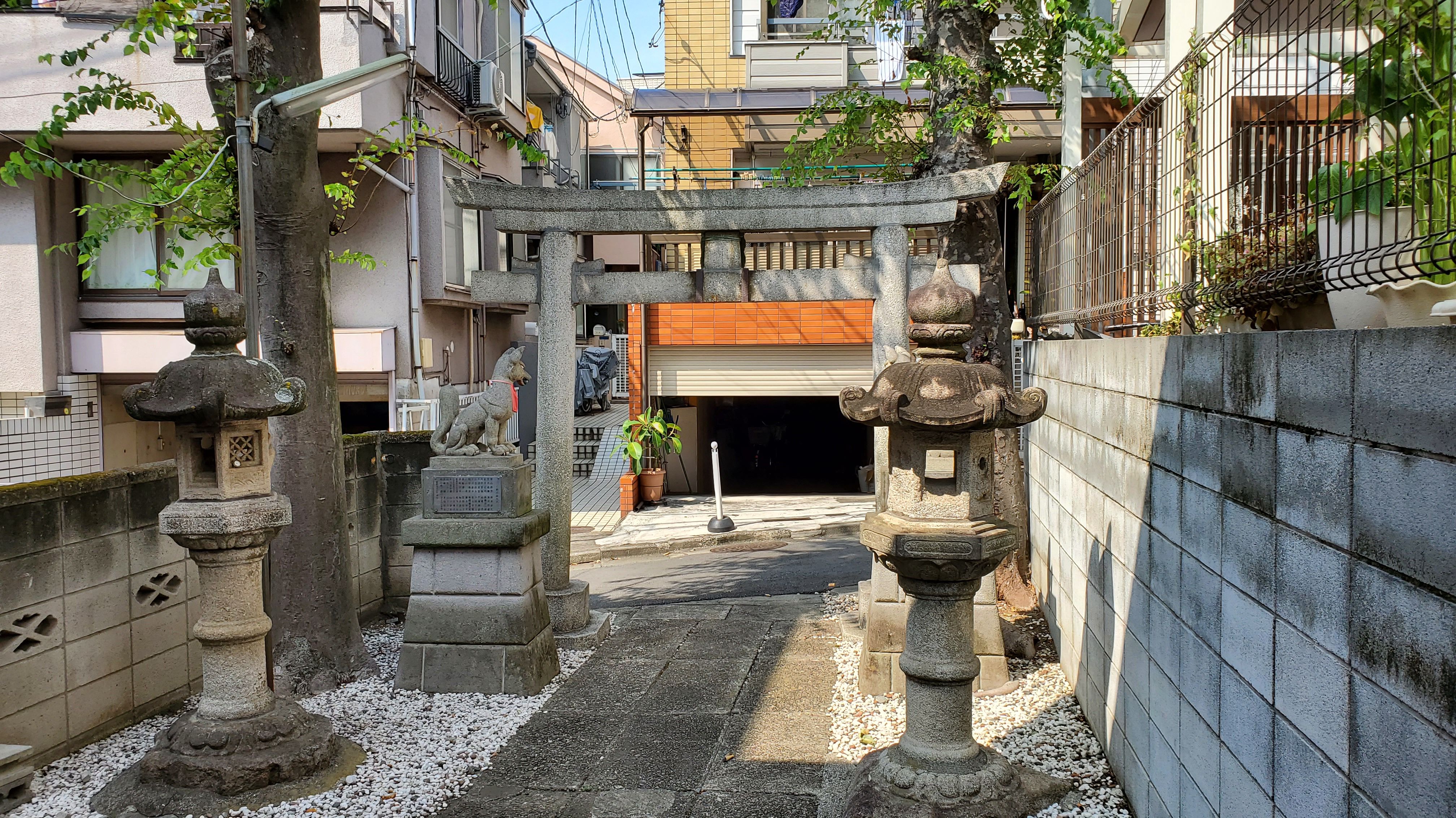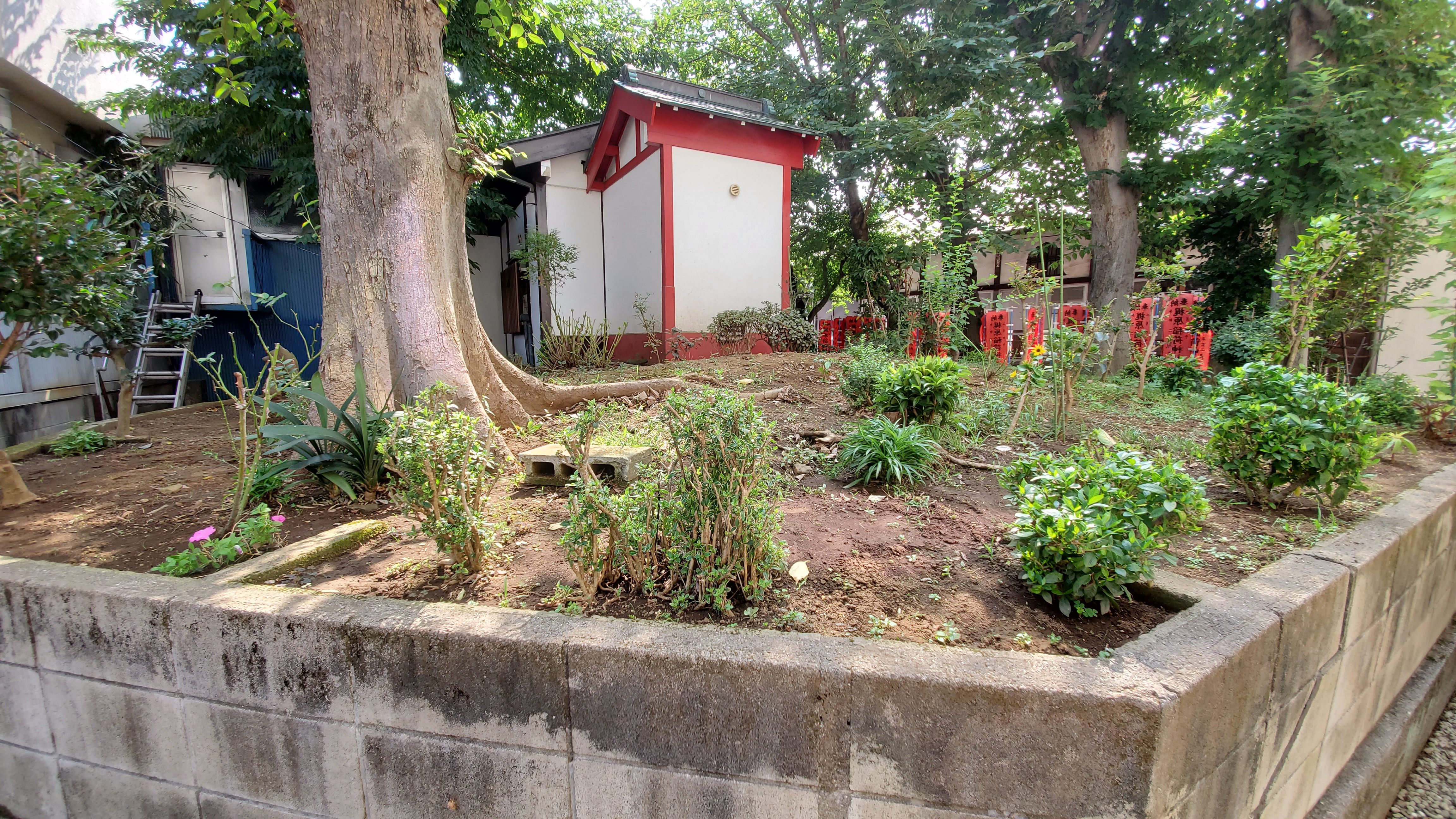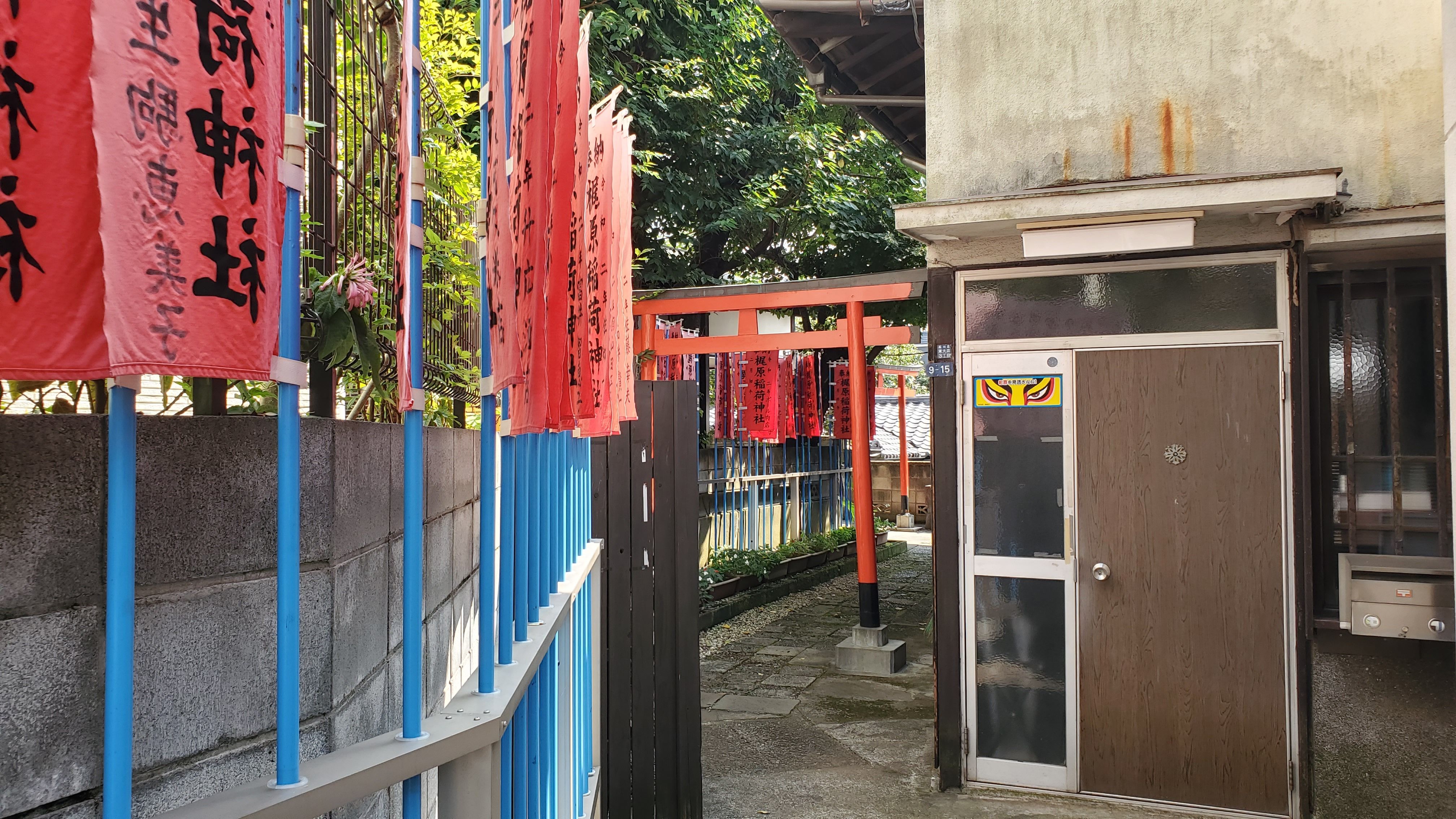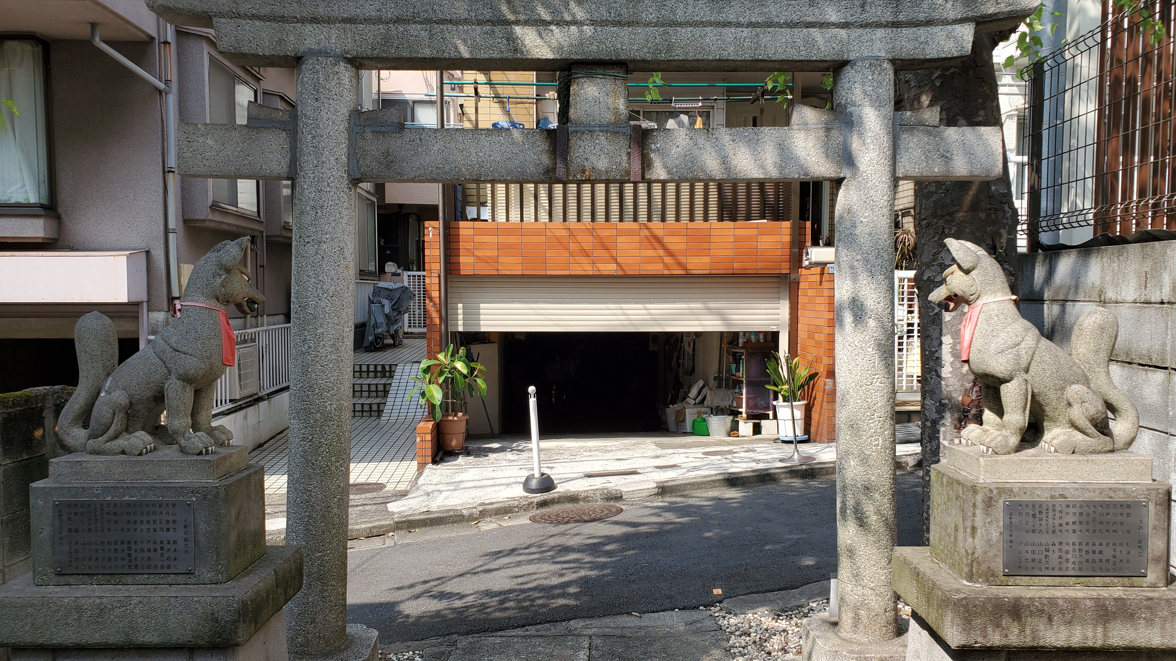囲みがあって盛り上がっています。梶原塚なる古墳。地続きだった来福寺境内にあったこの古墳脇に稲荷神社を遷座したということと理解しました。