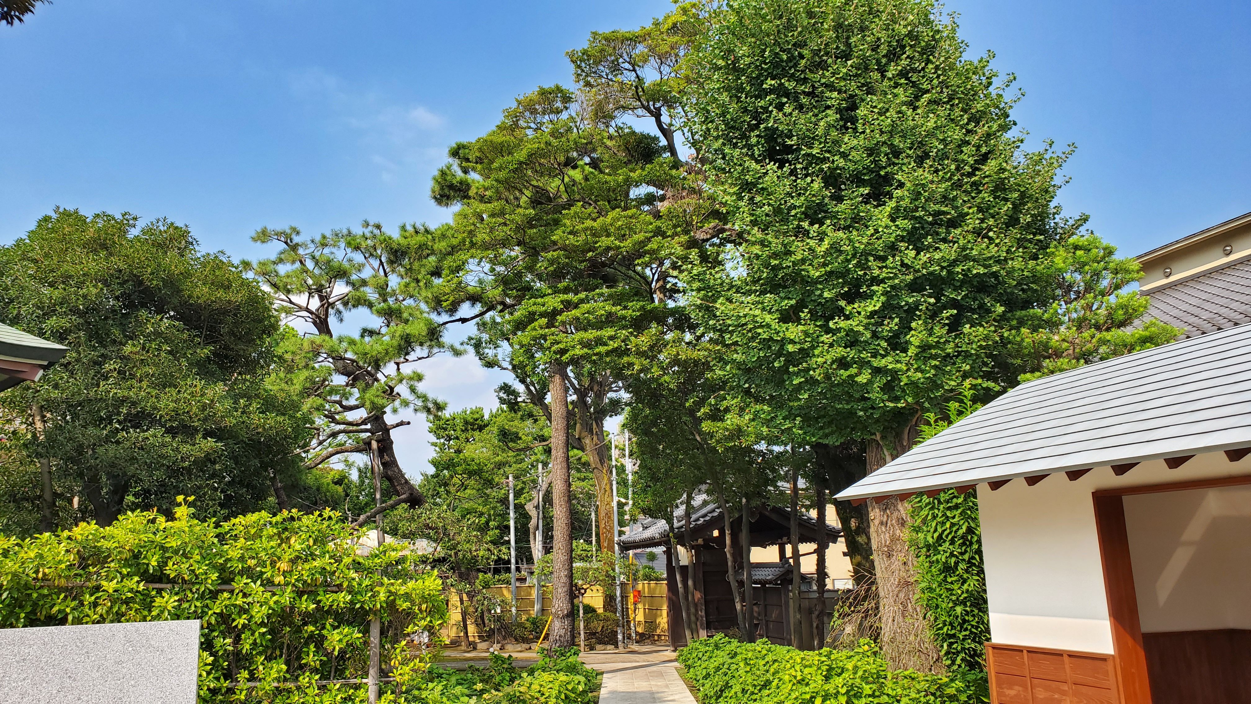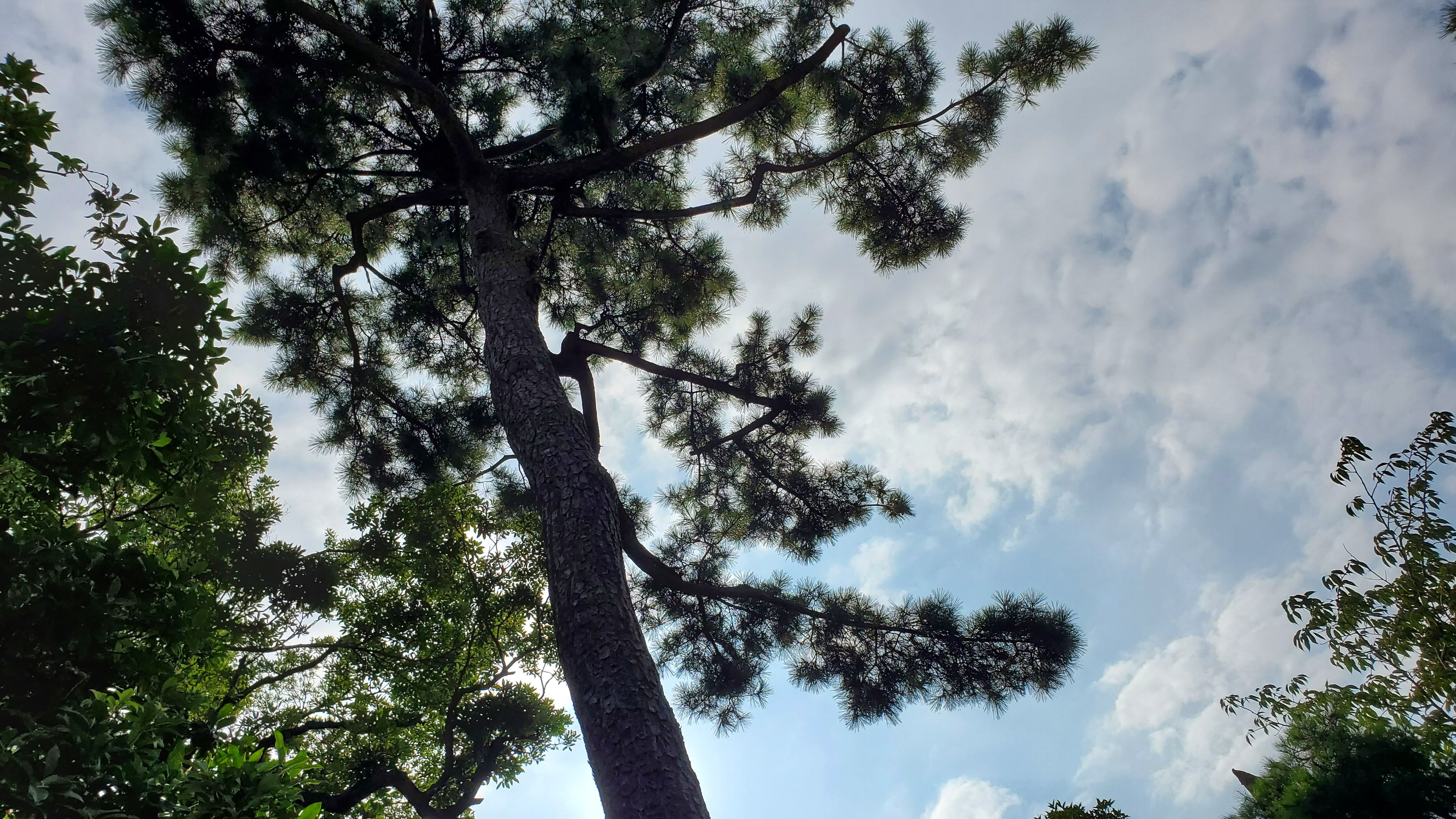 蓮華廟から山門方向……本当に真っすぐな一本松。