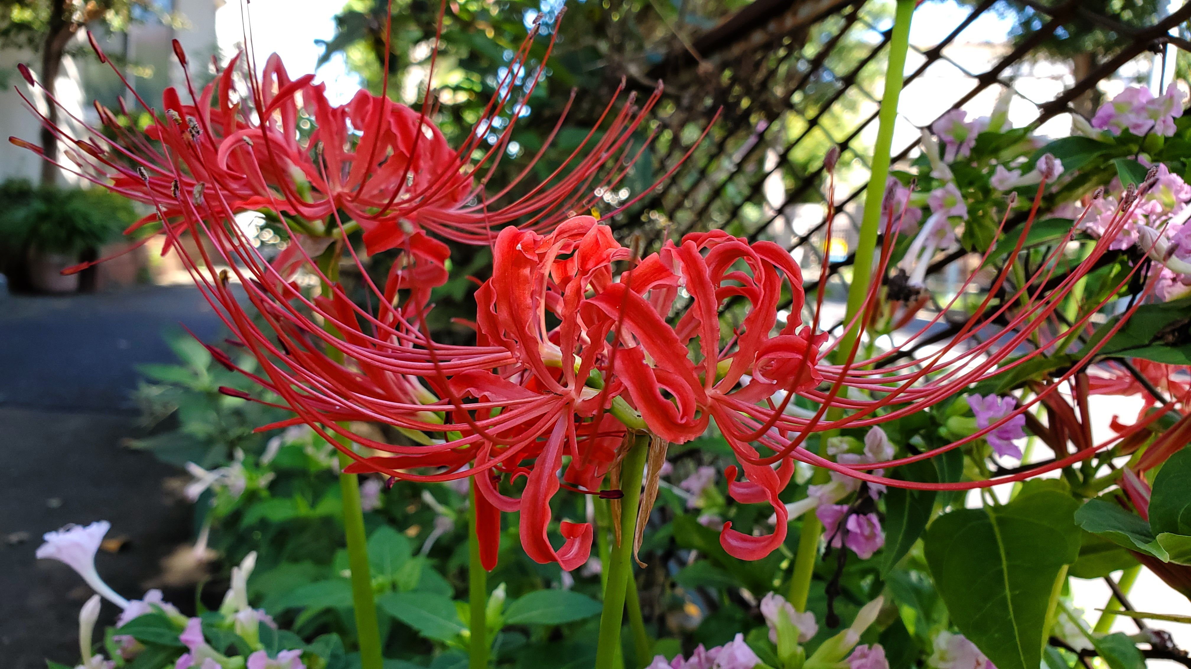 彼岸花……やっぱりありました。多年性だから毎年姿を現してくれるはずなのですが、年々少なくなっていくような。先日、渋谷の東福寺で見かけたのを思い出して探してみました。