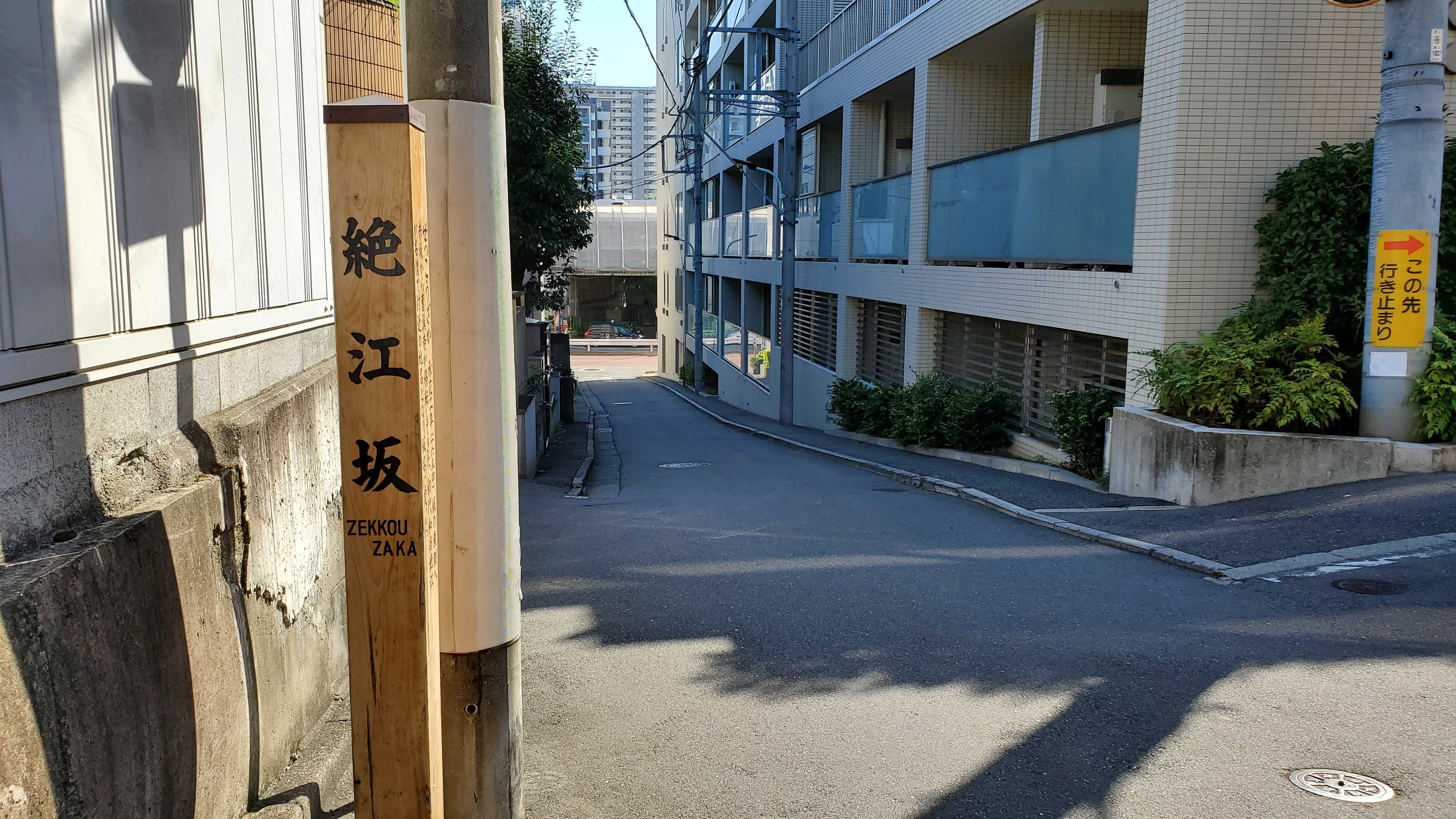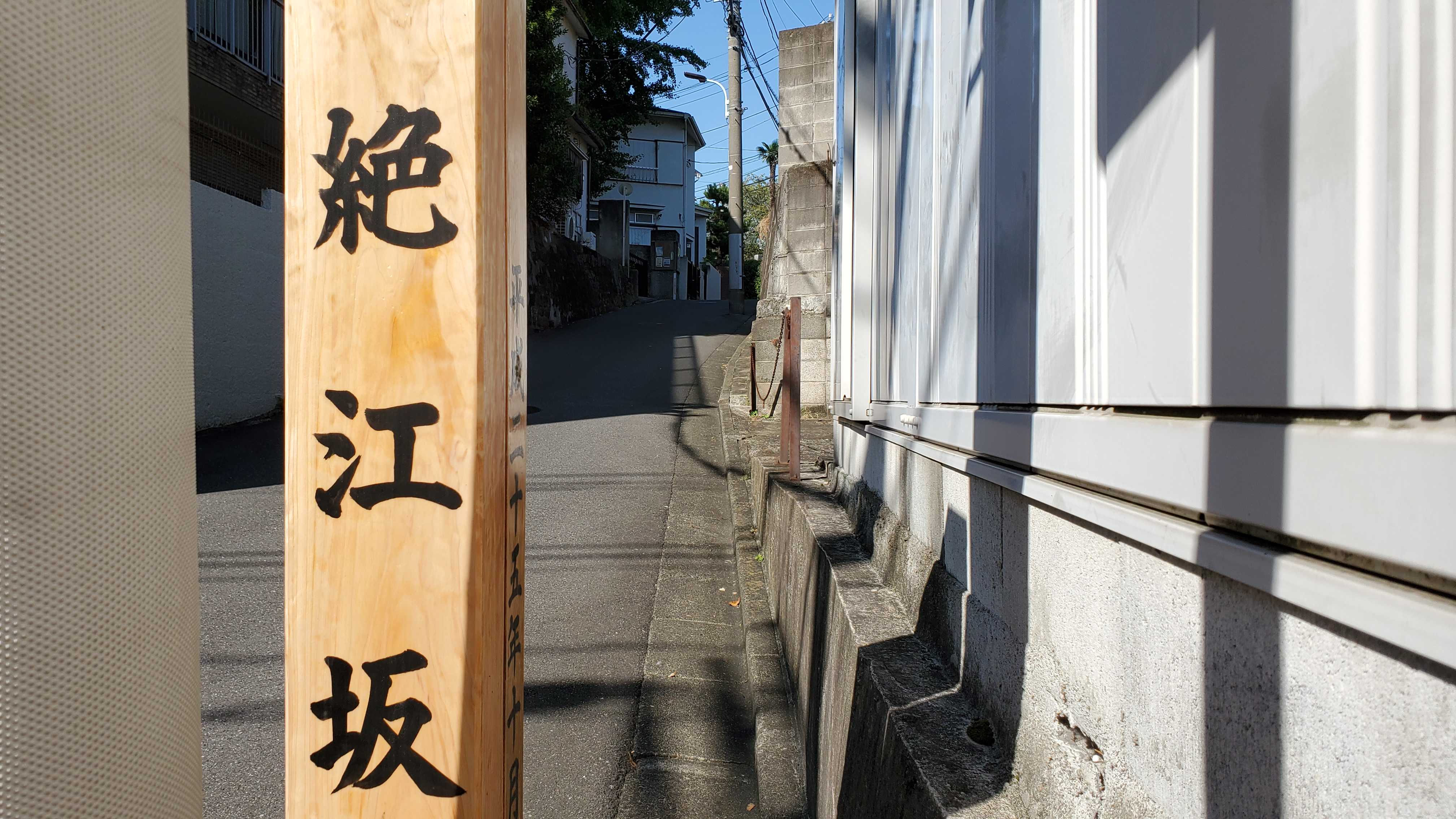 絶江坂(ぜっこうざか)……なんで電信柱に隠れるように坂標が立っているの? 少し離せばいいのに……ったく! 配慮に欠けるよね~