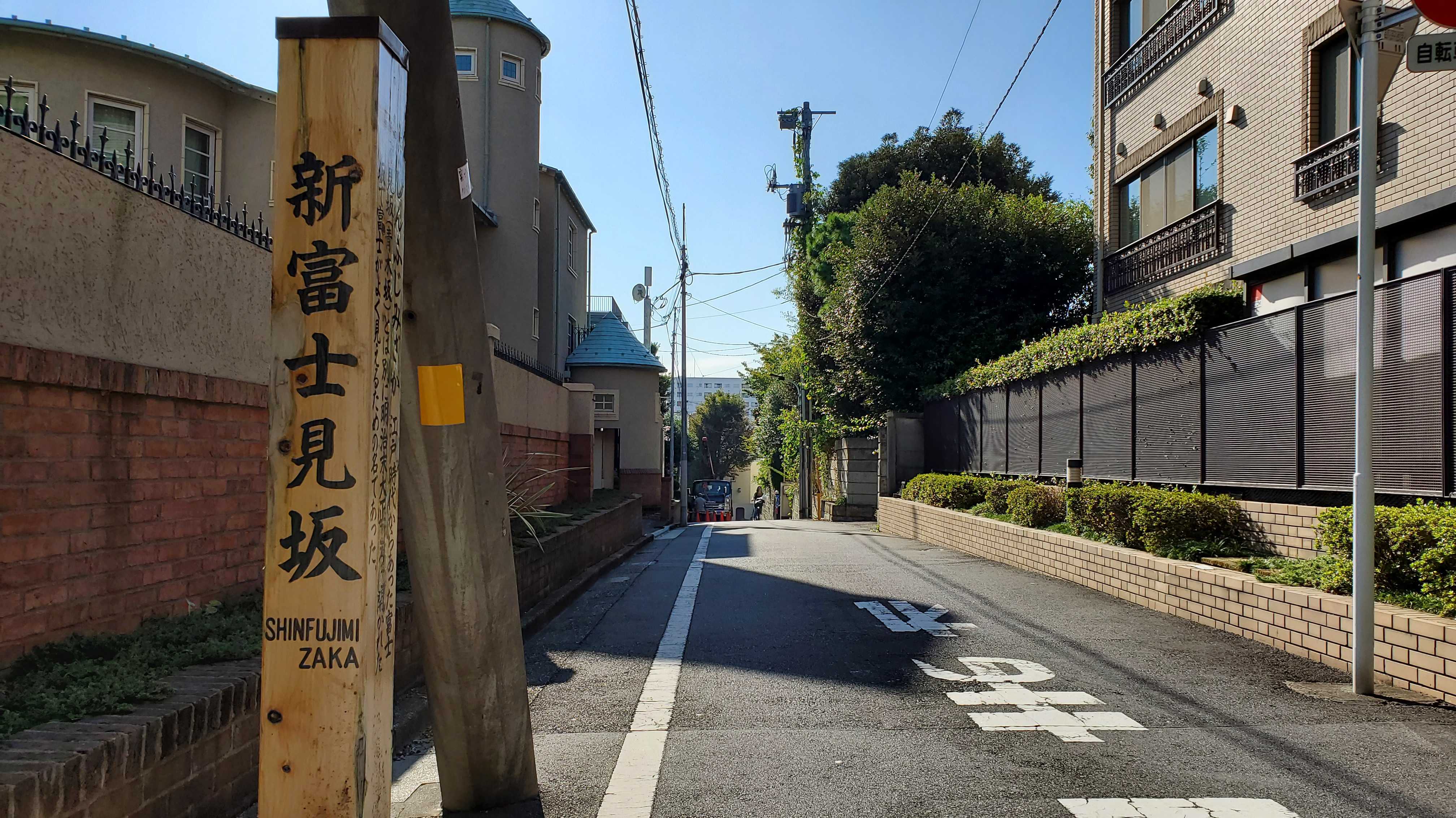 新富士見坂……『江戸時代からあった富士見坂(青木坂)とは別に、明治末大正ごろに開かれた坂で富士がよく見えるための名であった。』と坂標に書かれていました。