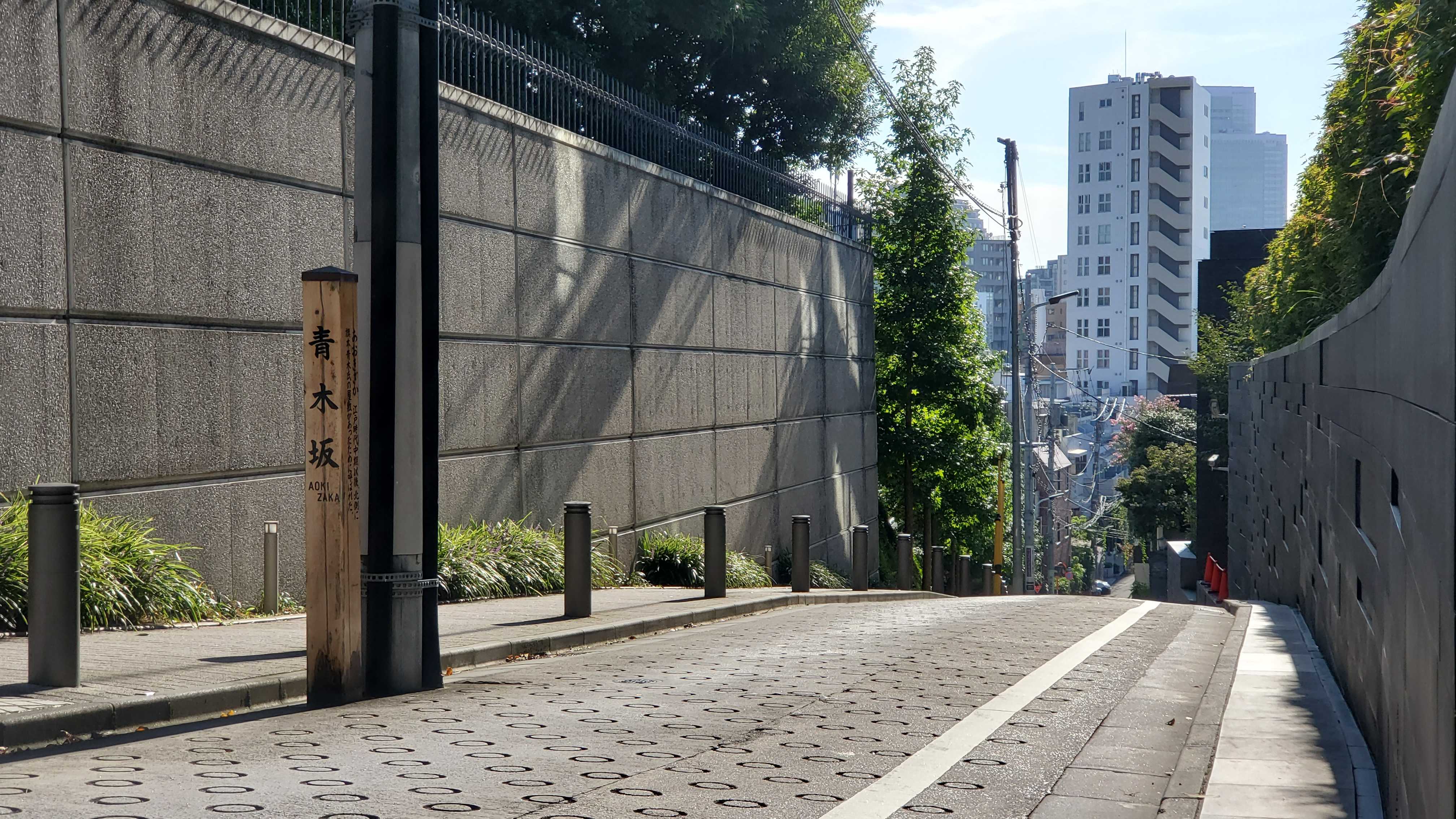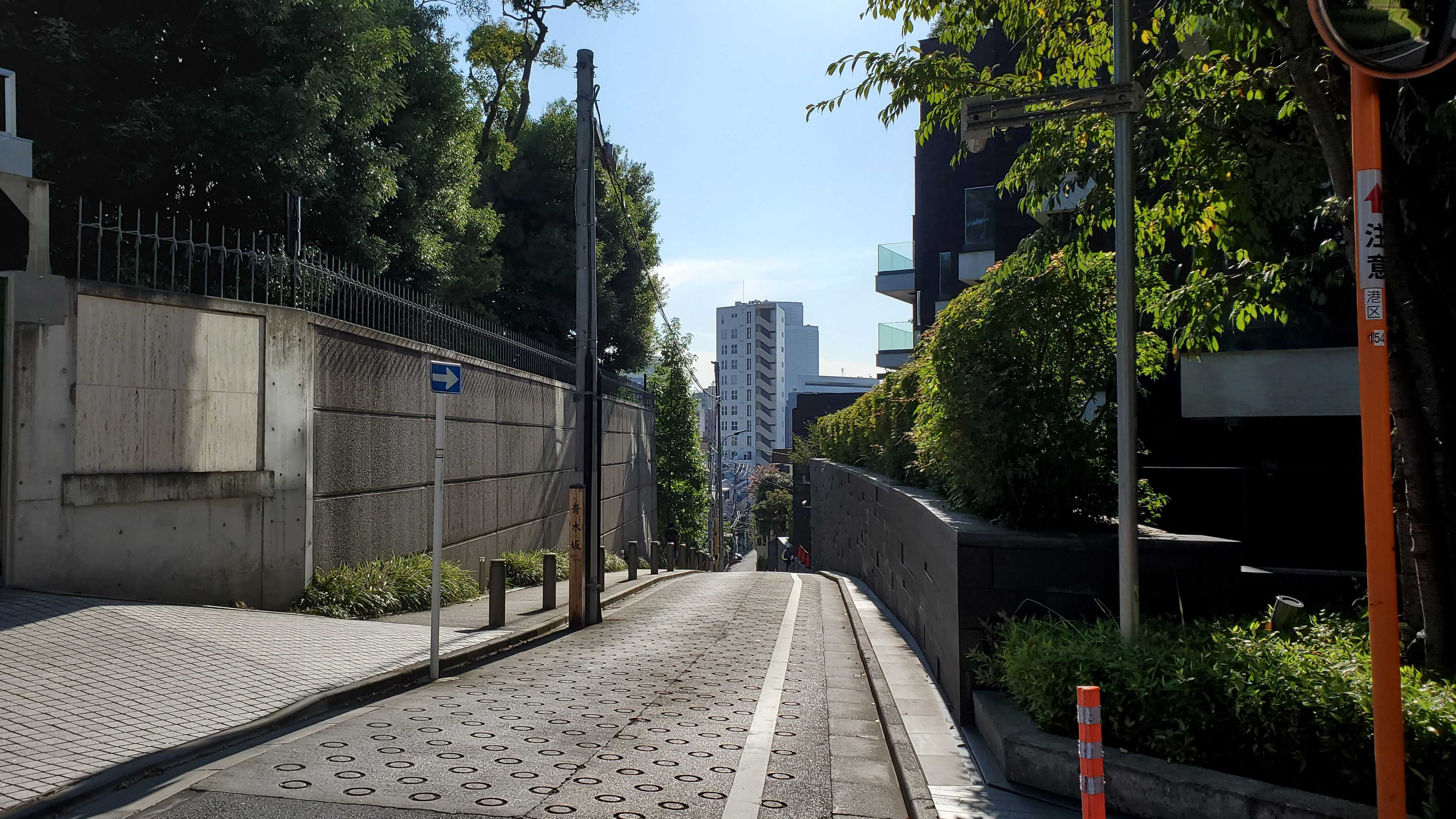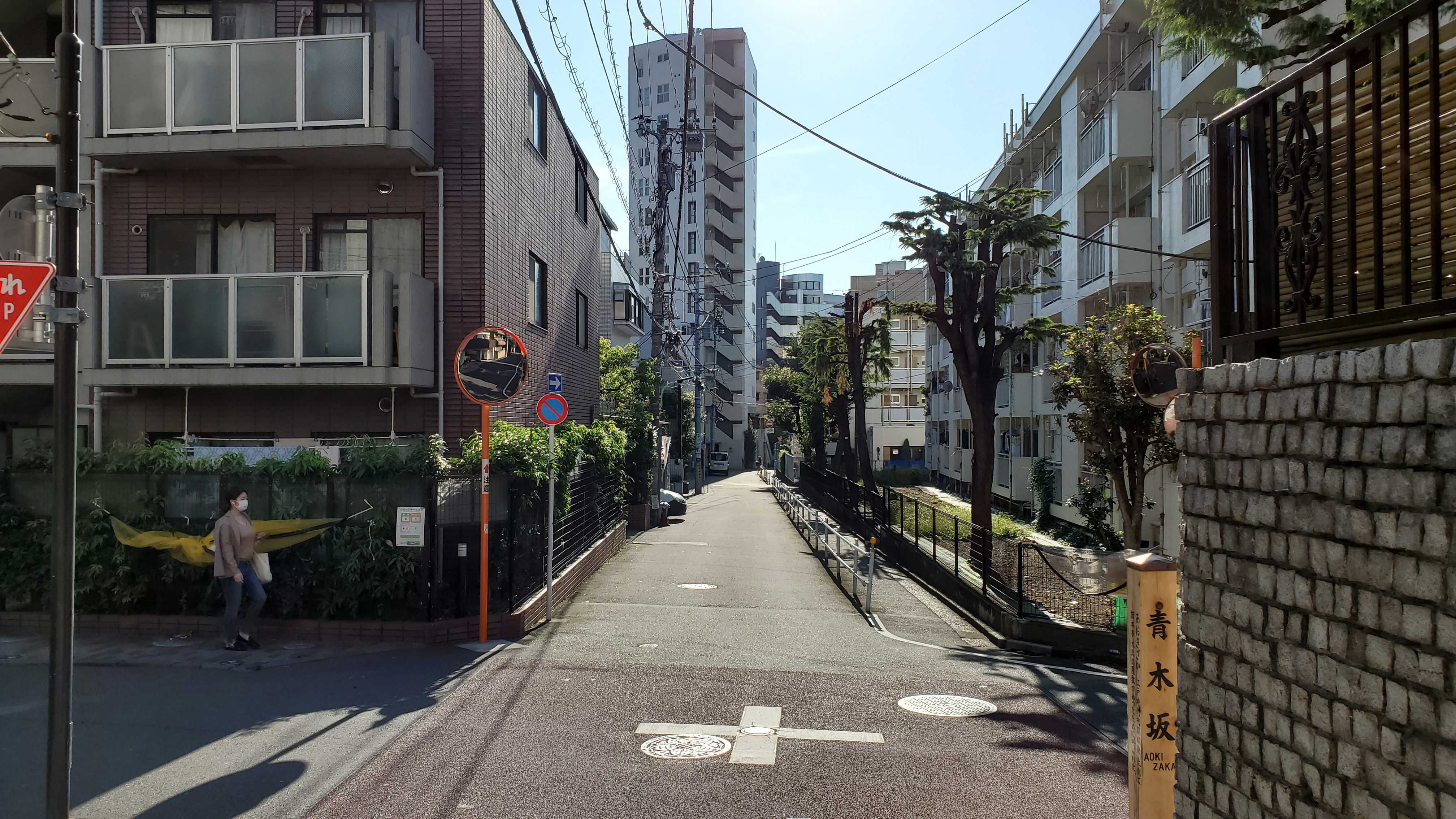 さて、初めの方の位置にワープ……青木坂とともに南麻布4-10に面するもう一つの坂の入り口。