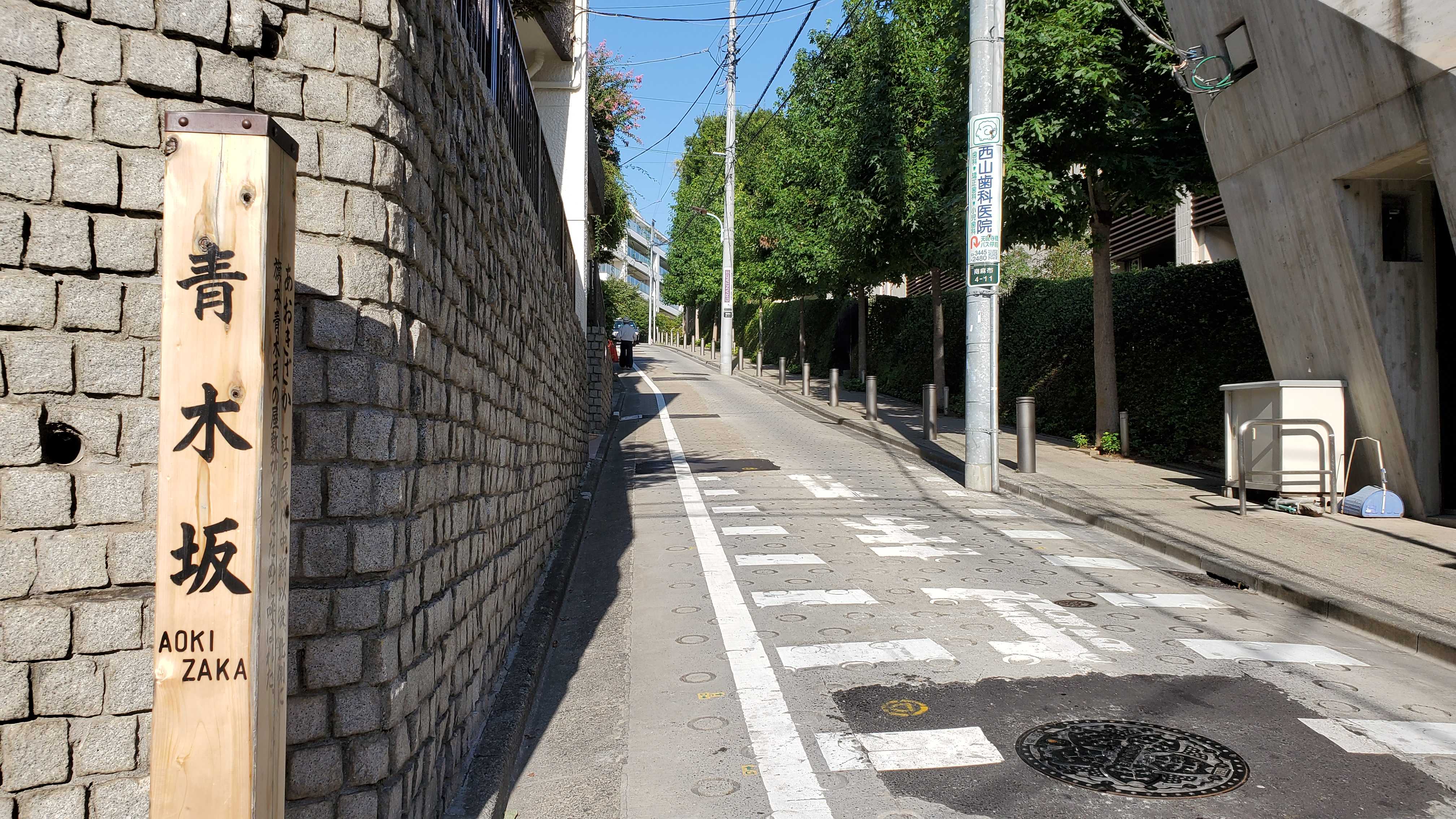 青木坂……江戸時代中期以後、北側に旗本青木氏の屋敷があったためにこう呼ばれていると。方角的には充分に富士山も見えたでしょうから富士見坂でも良かったのに、青木氏の方が勝ったということか。