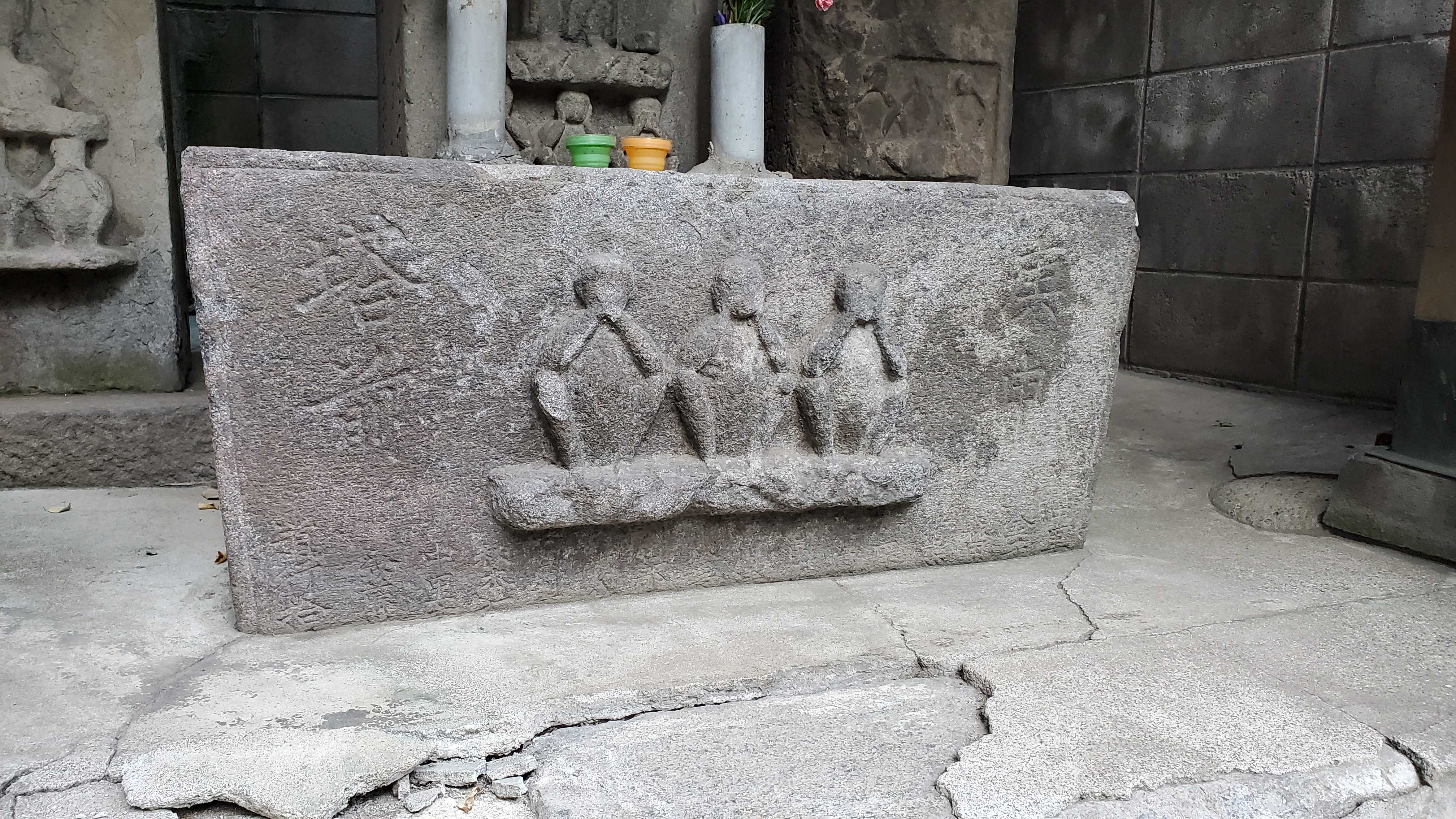 手水盤らしきにも三猿……十二支=「子・丑・寅・卯・辰・巳・午・未・申・酉・戌・亥」庚申の「申(さる)」から信仰に結び付いたと。あるいは「厄が去る(サル)」なんて語呂合わせもあったと。