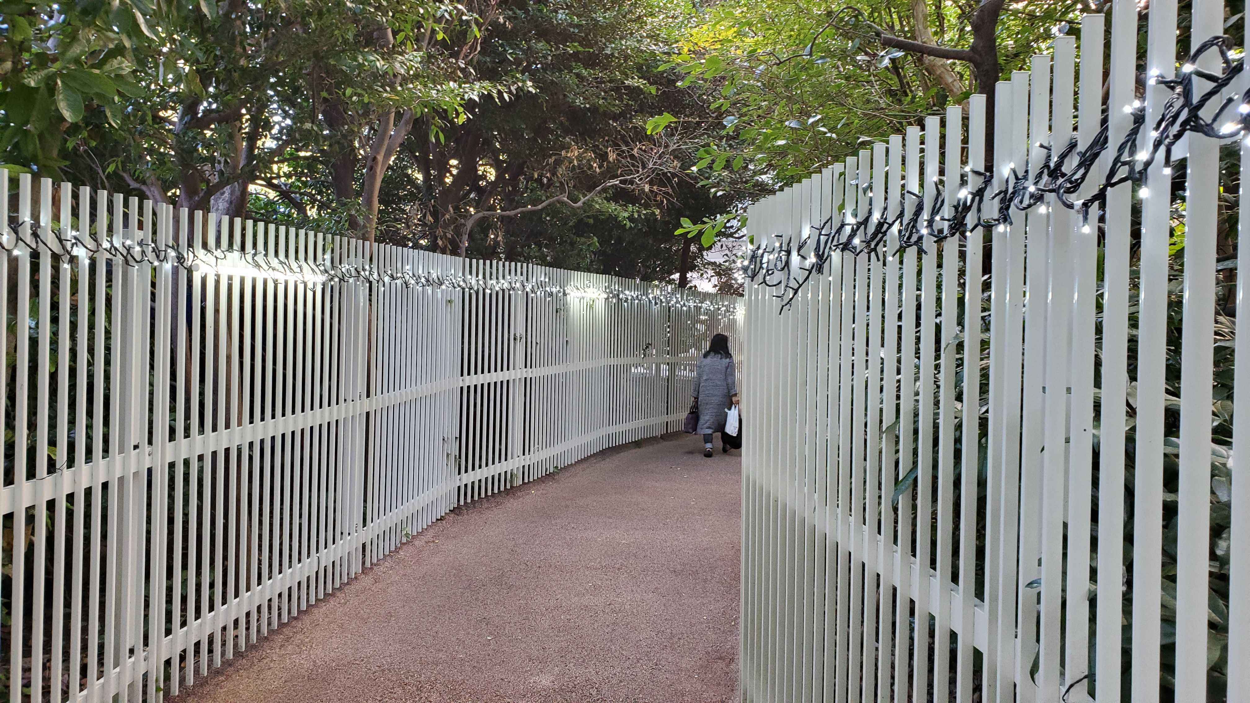 工事をしていたので架設の柵なんでしょう……マンション敷地を通り抜け……
