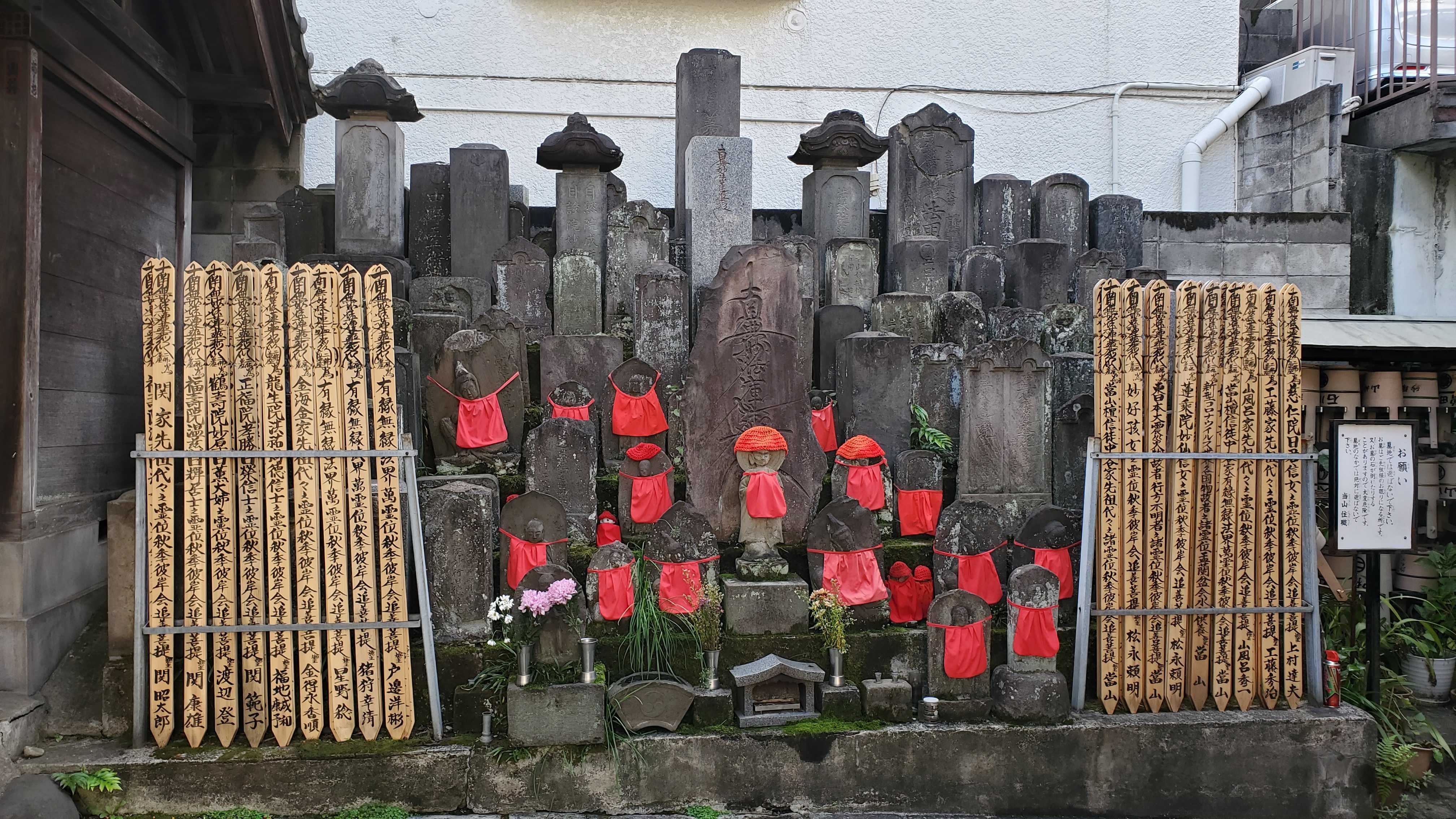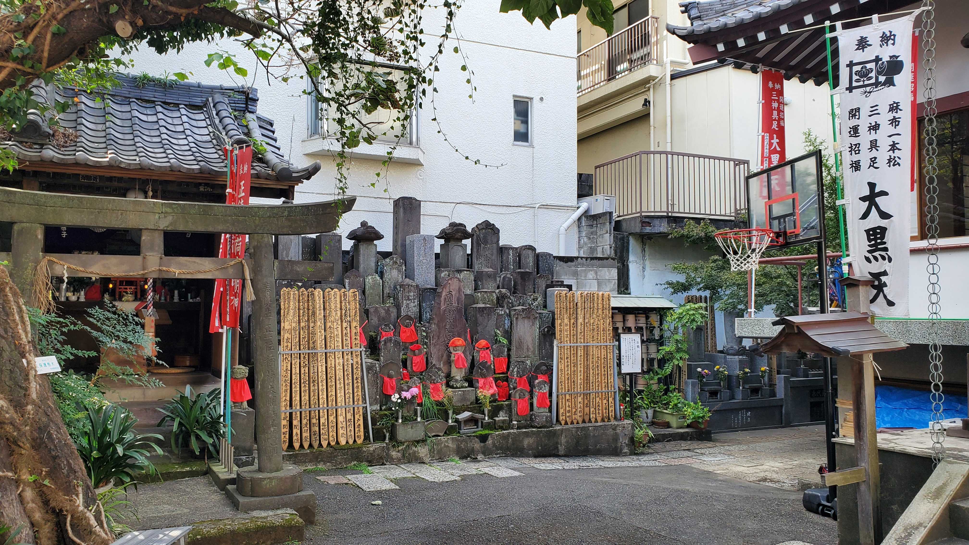 本堂正面の左側には大勢の大黒様……江戸時代より麻布一本松大黒天として地域に親しまれていると。それぞれ古いものです。