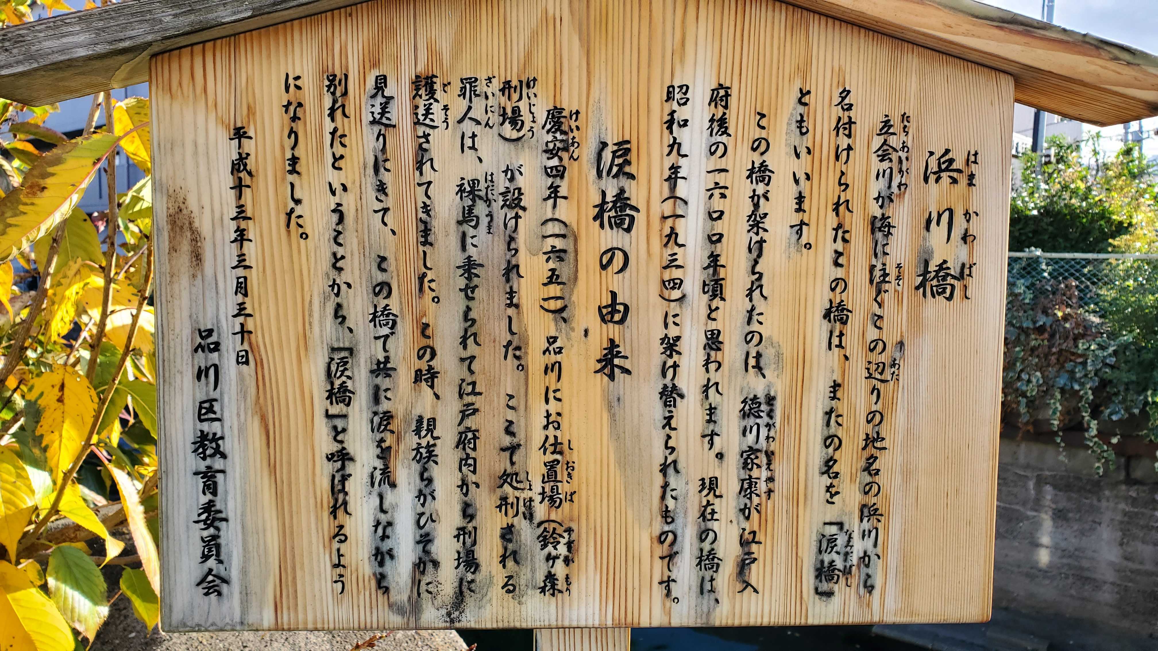 涙橋……鈴ヶ森刑場に送られていく罪人を見送った別れの橋でもあると。刑場から700mほど手前です。