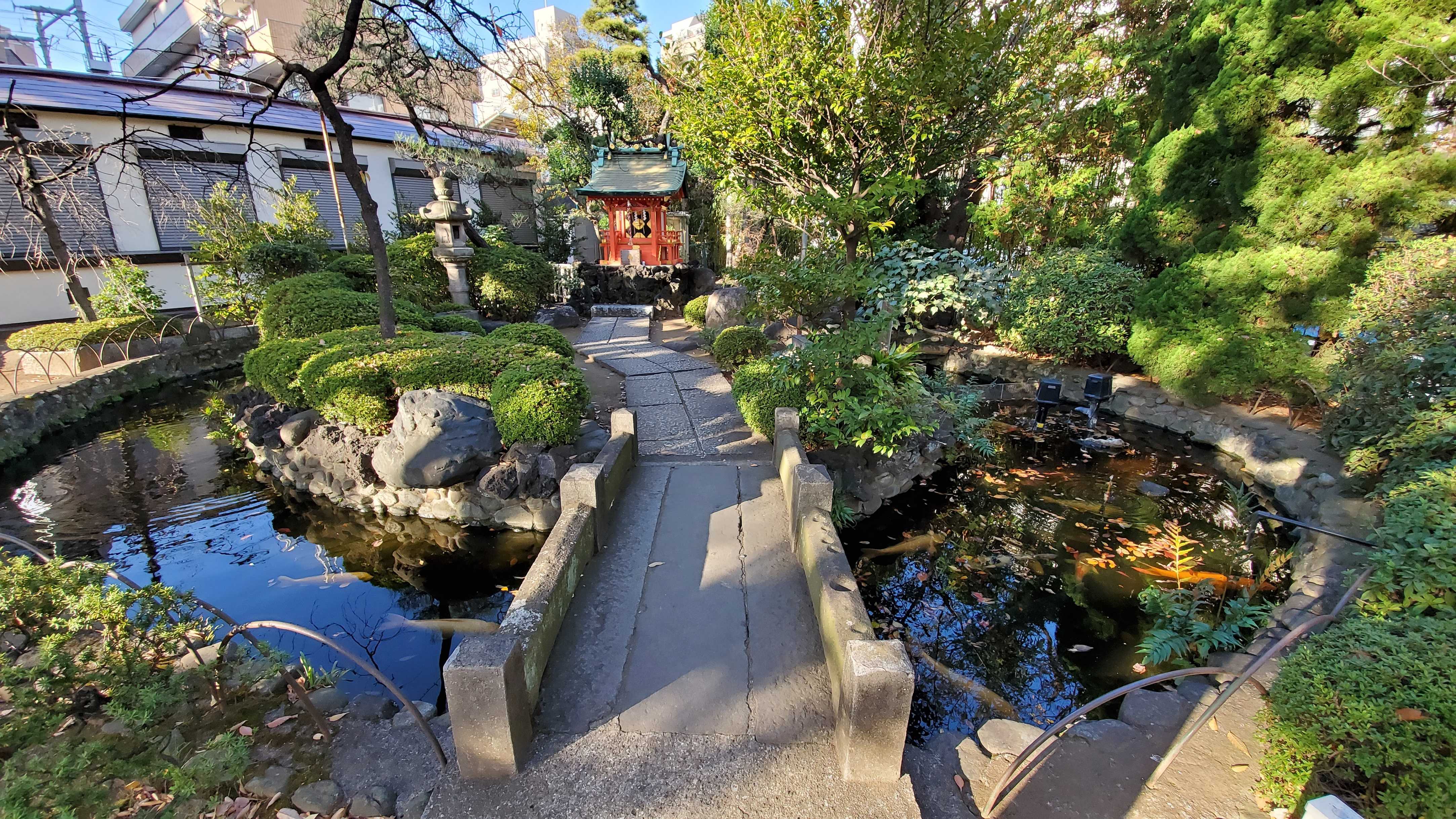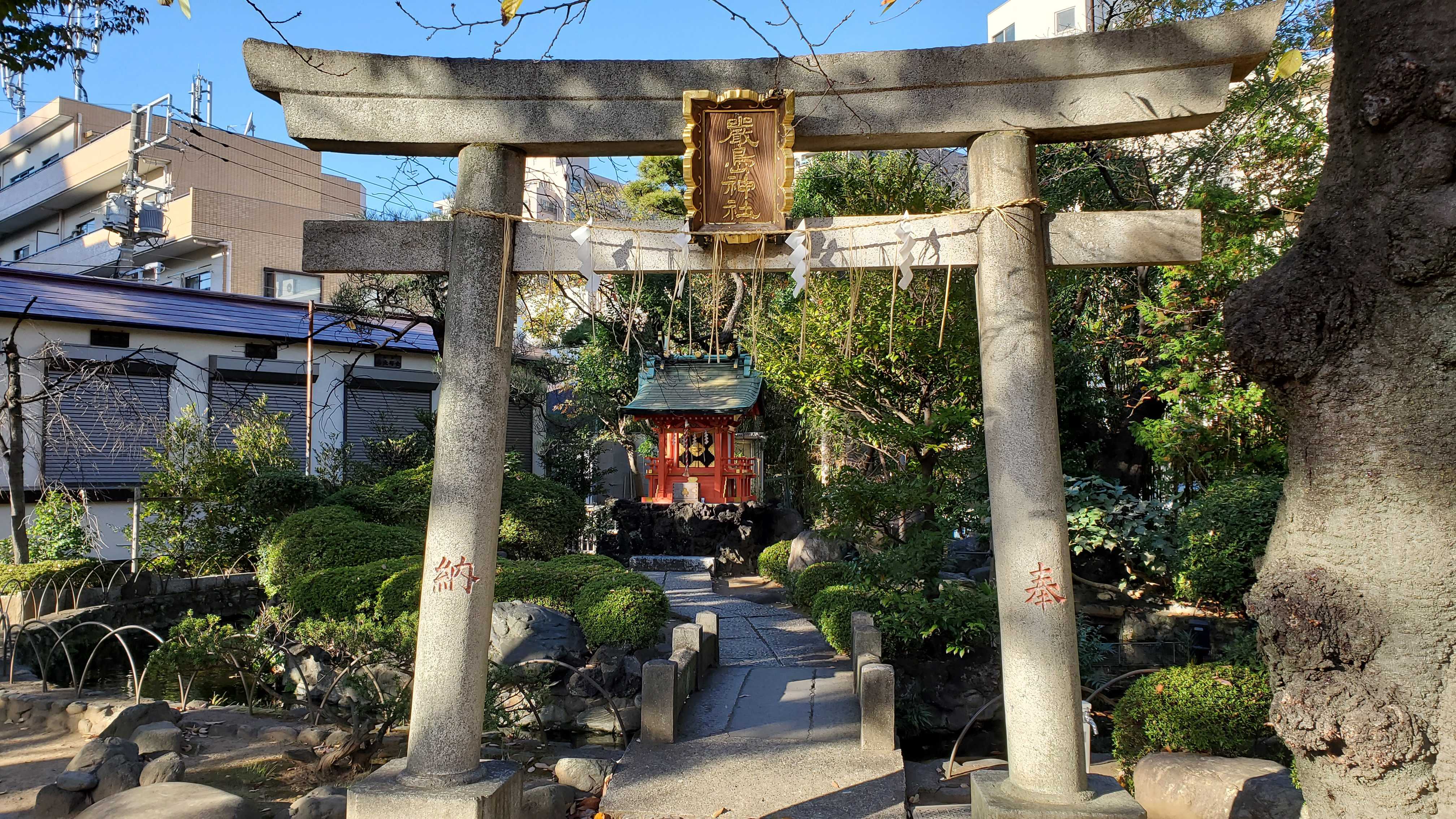 両社は昭和40年(1965年)に合祀され、天祖・諏訪神社と称されるようになった。この位置から立会川を挟んで北側の北濱川と呼ばれた地域に、今も取り残されている仲町稲荷神社の場所に諏訪神社がありました。別当寺は「来福寺」とのこと。昨年8月に訪問した際は入寺禁止だったけど、緊急事態宣言下の今も入れないんでしょう。いつかは行ってみたいたい寺院です。