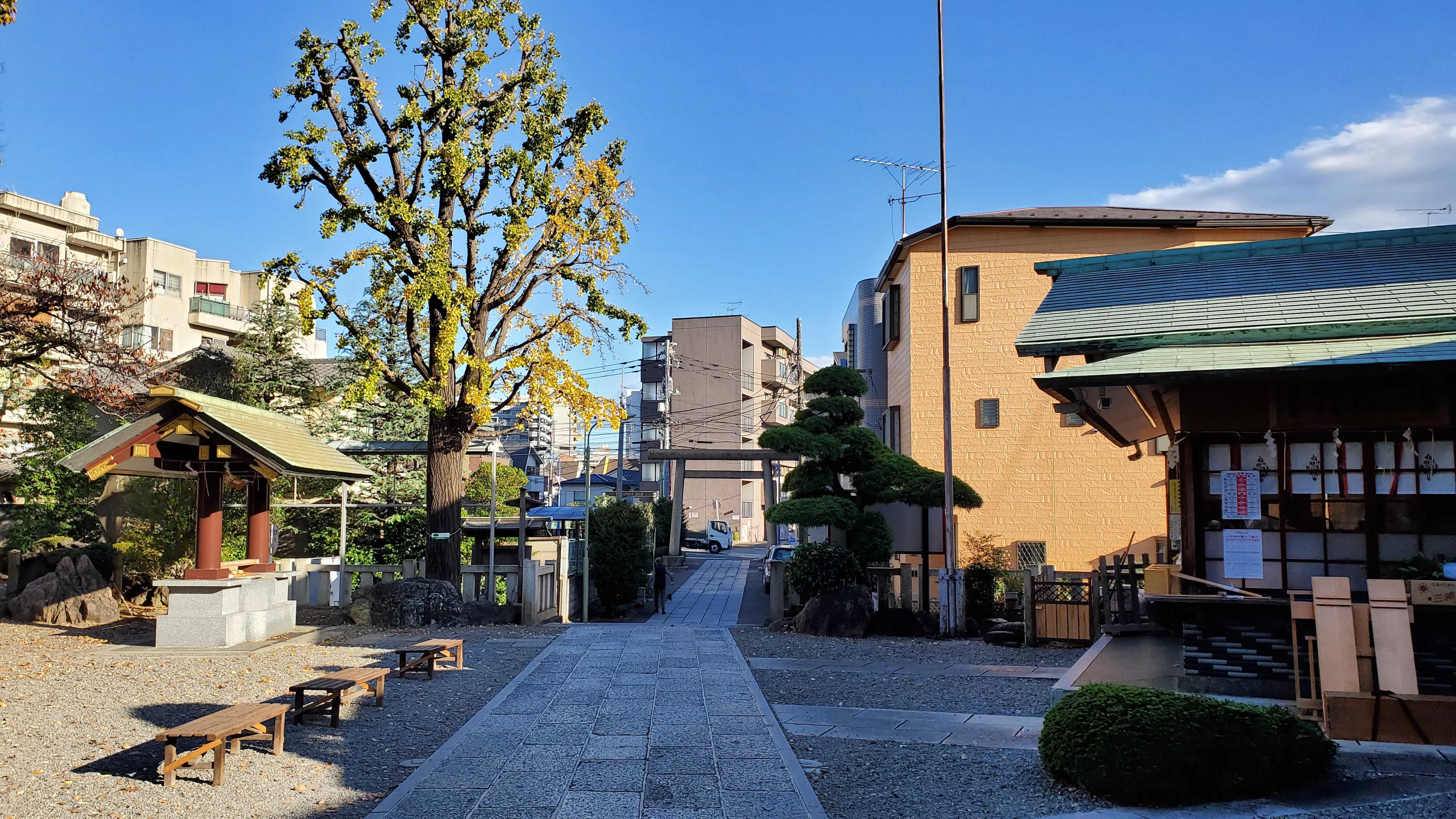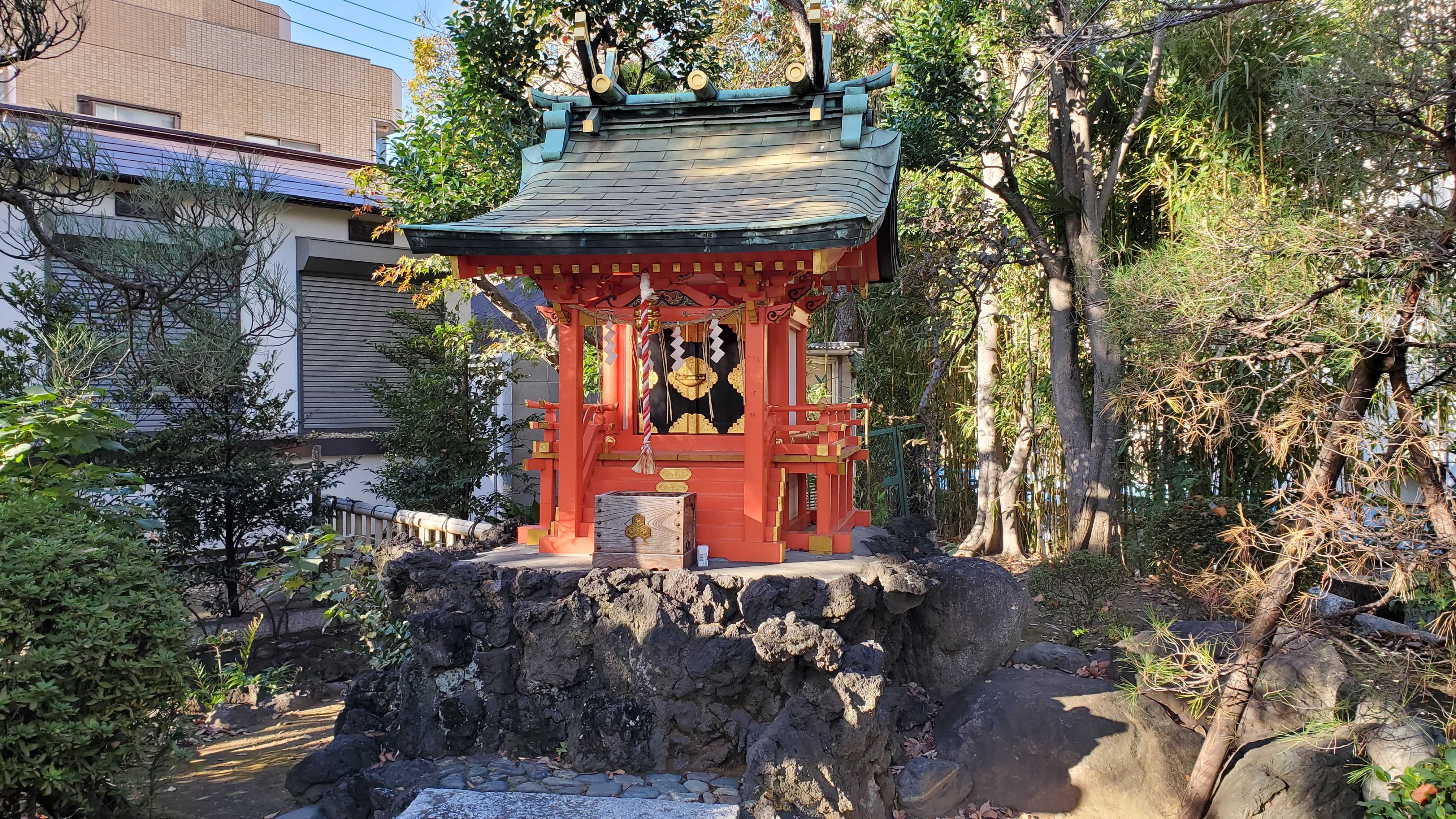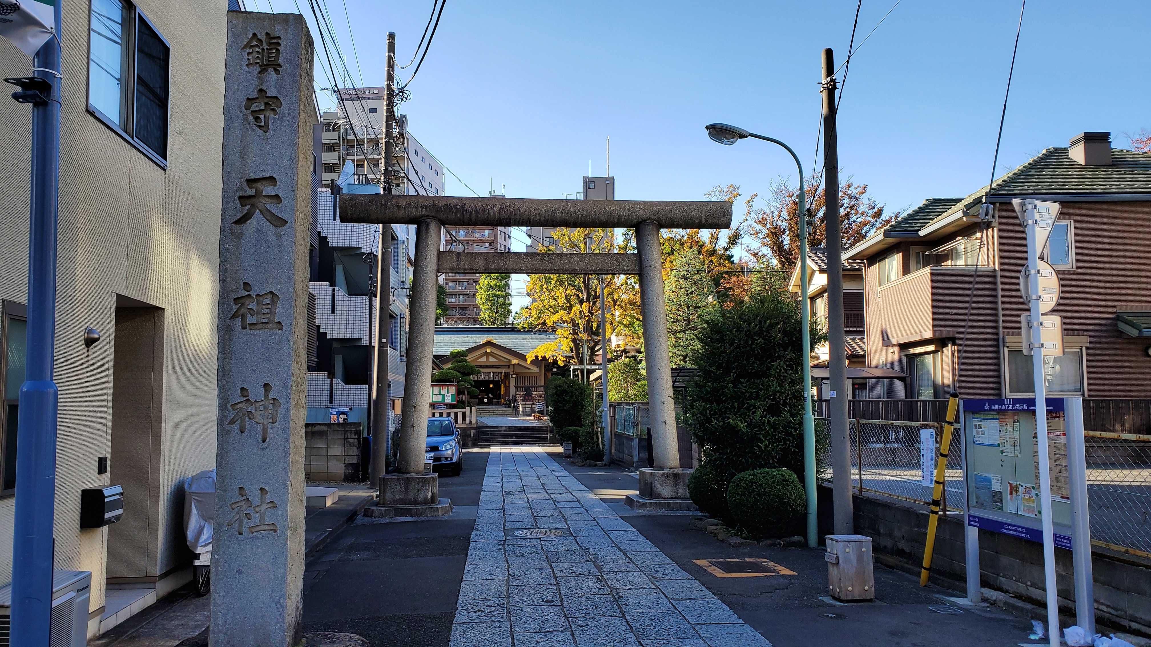 天祖・諏訪神社……『浜川町と元芝の鎮守の氏神様として仰ぎ親しまれる天祖・諏訪神社。古くは神明宮、諏訪社と称し、かつては両社とも東京湾に面し、立会川を挟んで並び祀られていました。天祖神社の創建は、建久年間の大井郷之図や来福寺の記録から西暦1100年から1190年頃に遡るとも思われ、諏訪神社は松平土佐守の下屋敷の海岸寄りにあり、江戸時代初期の寛永8年(1631年)以前の創建と思われる。』(同社HPより)