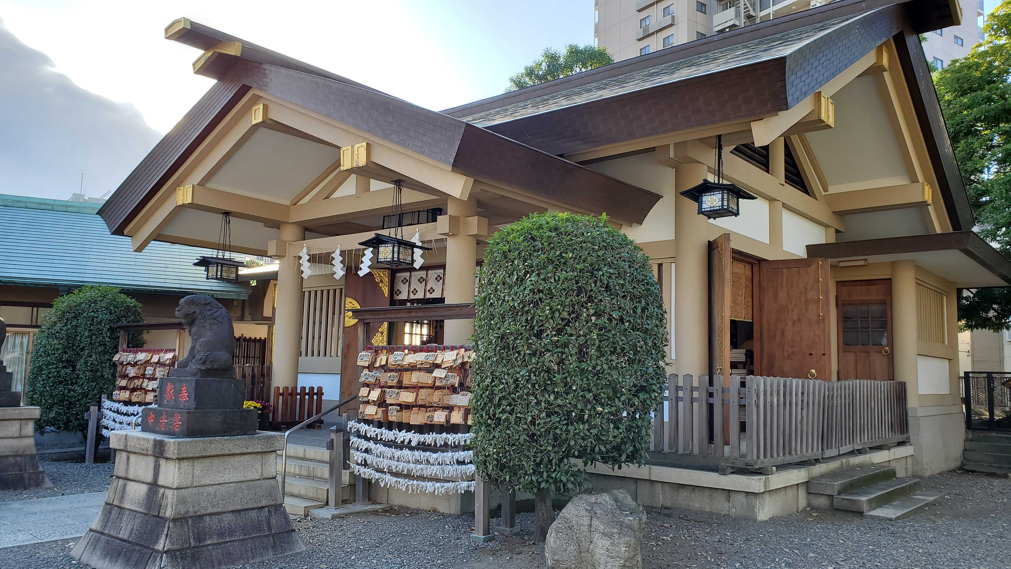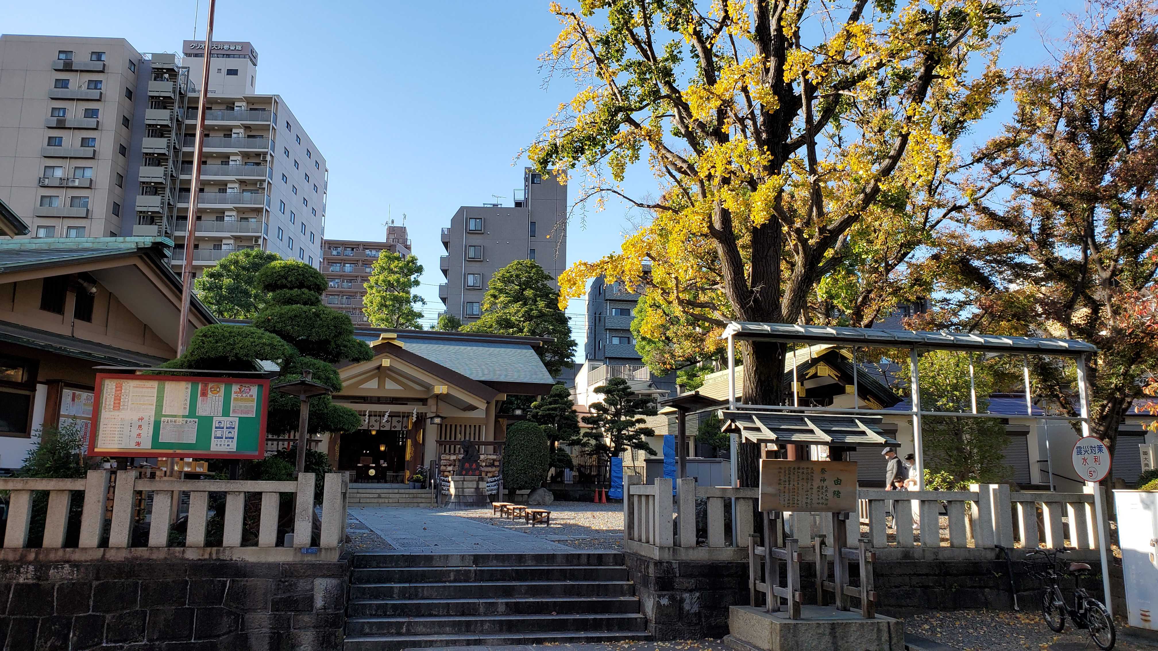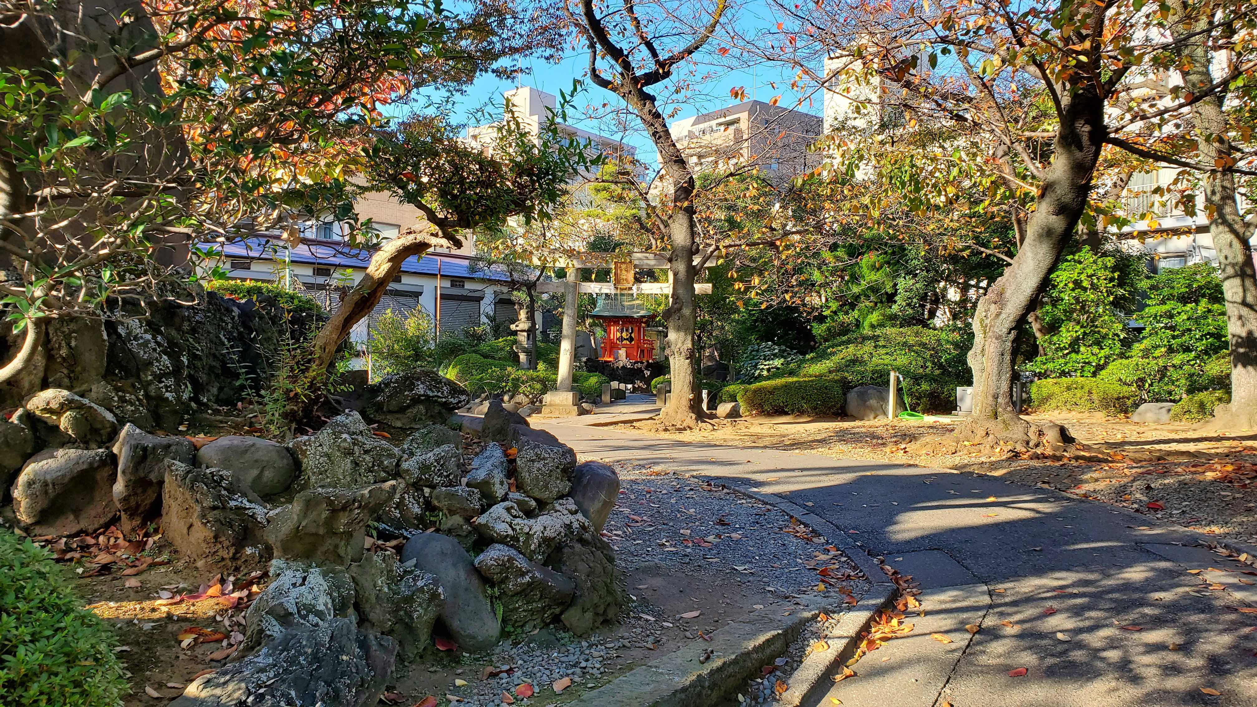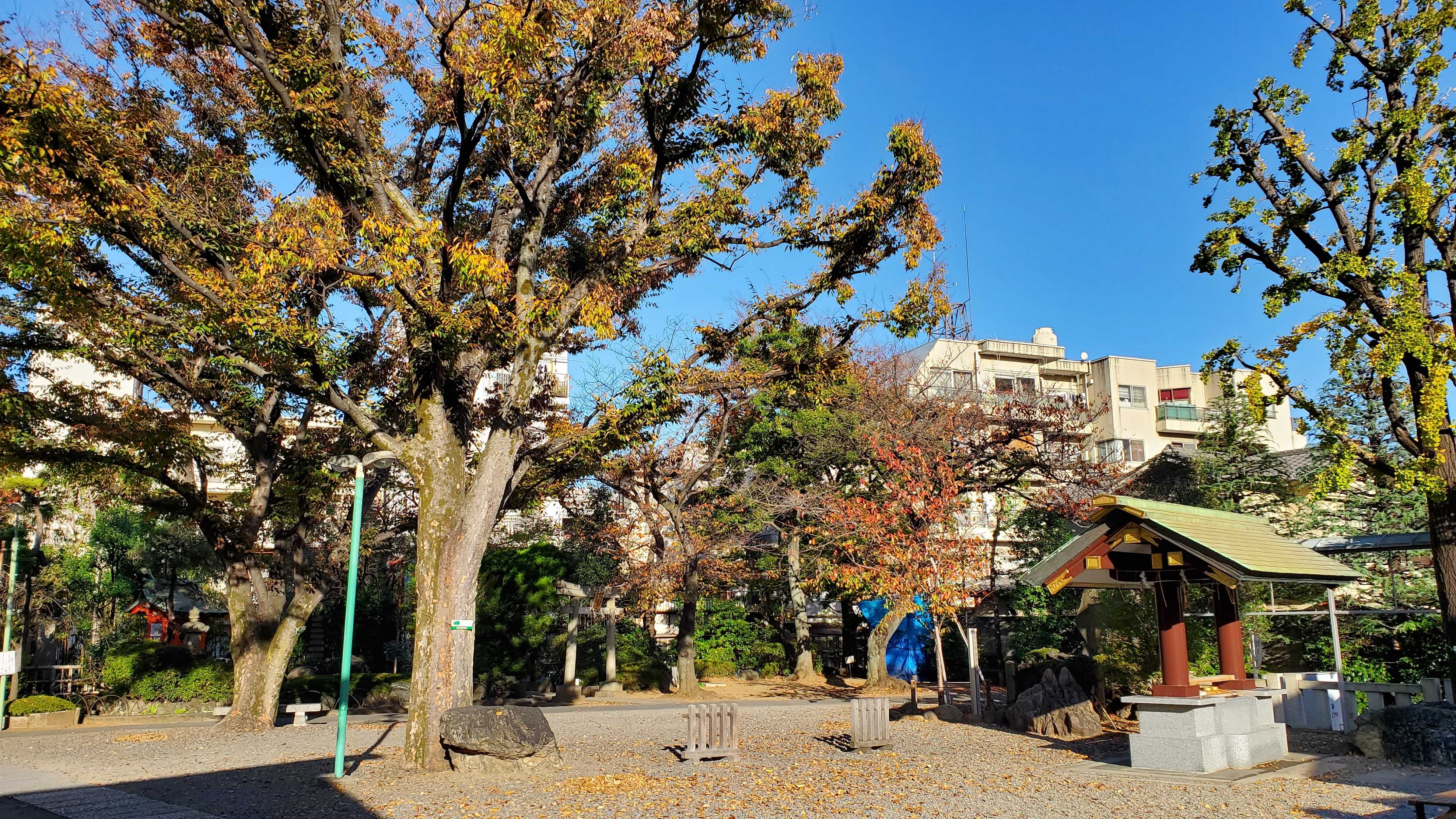 天祖・諏訪神社……『浜川町と元芝の鎮守の氏神様として仰ぎ親しまれる天祖・諏訪神社。古くは神明宮、諏訪社と称し、かつては両社とも東京湾に面し、立会川を挟んで並び祀られていました。天祖神社の創建は、建久年間の大井郷之図や来福寺の記録から西暦1100年から1190年頃に遡るとも思われ、諏訪神社は松平土佐守の下屋敷の海岸寄りにあり、江戸時代初期の寛永8年(1631年)以前の創建と思われる。』(同社HPより)