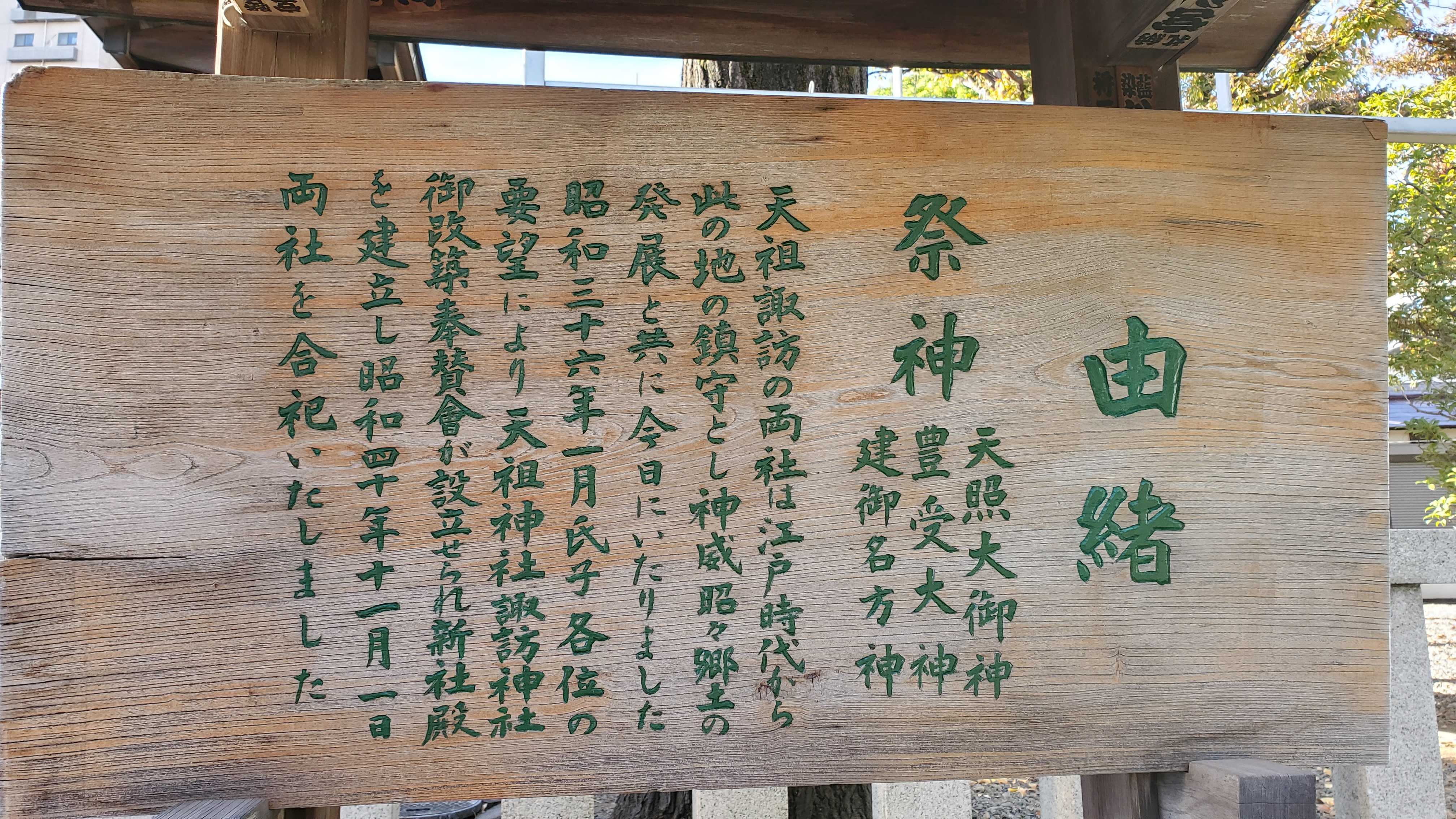 天祖・諏訪神社社殿……拝殿で御祈祷がなされていたので、遠慮して近づきませんでした。正面からの写真も撮らず……