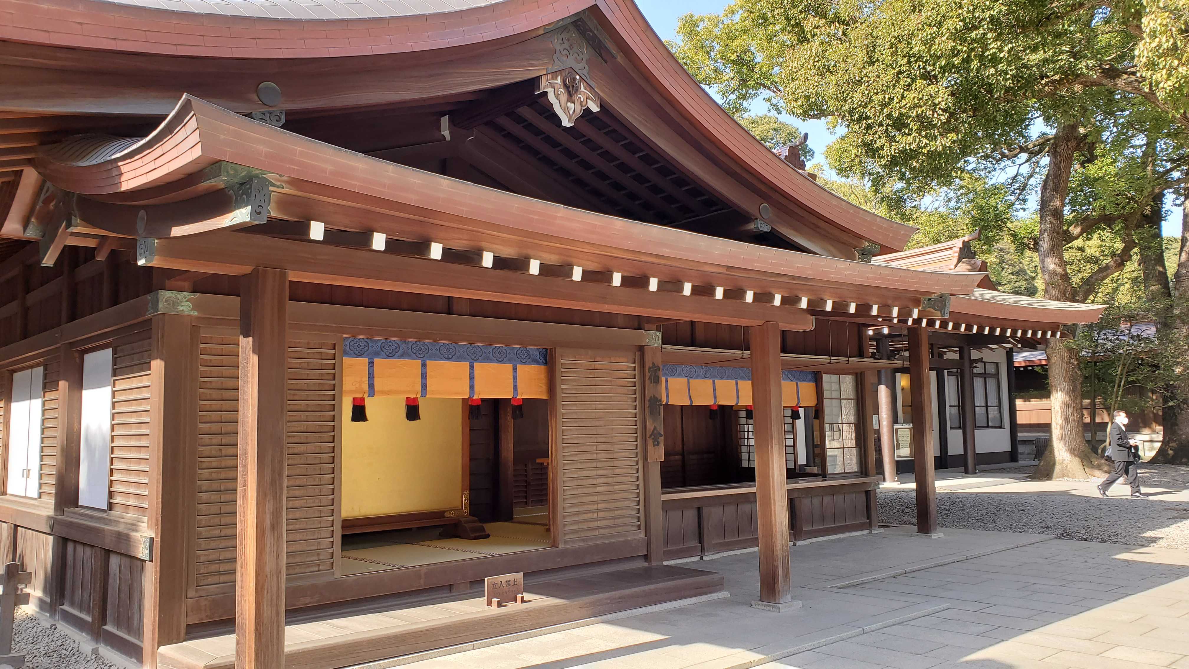 宿衛舎……宮司さんなどが寝泊りする場所かしら? 右の窓はお守りが入手できるのかもしれません。職員さんが居たらですが……