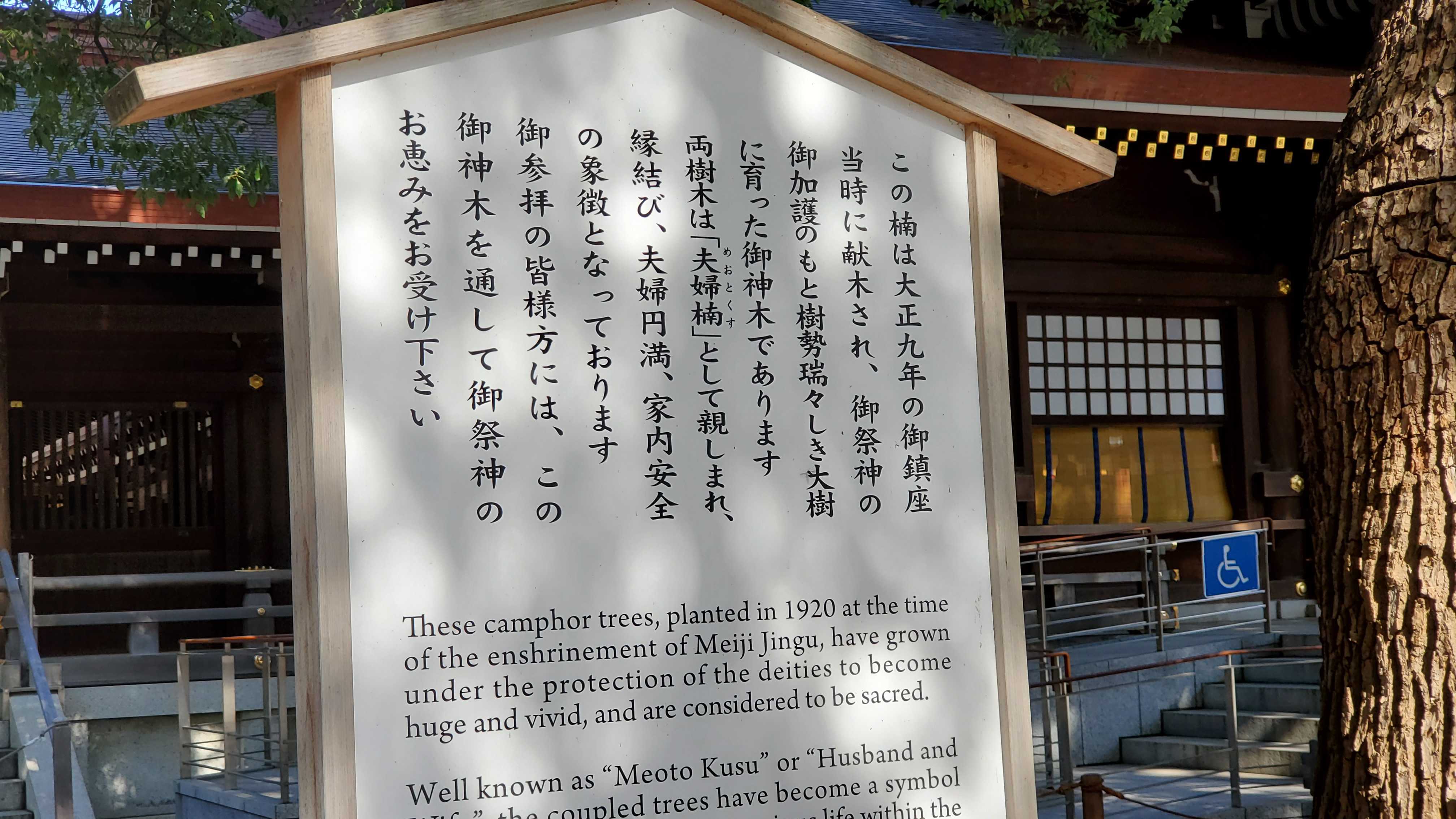 「夫婦楠」……大正9年、御鎮座当寺に献木されたと。