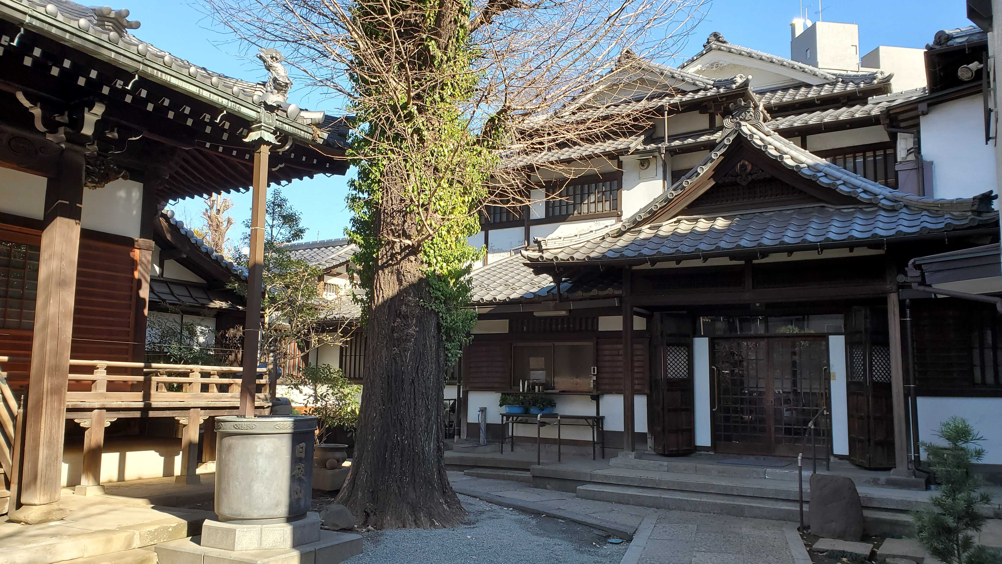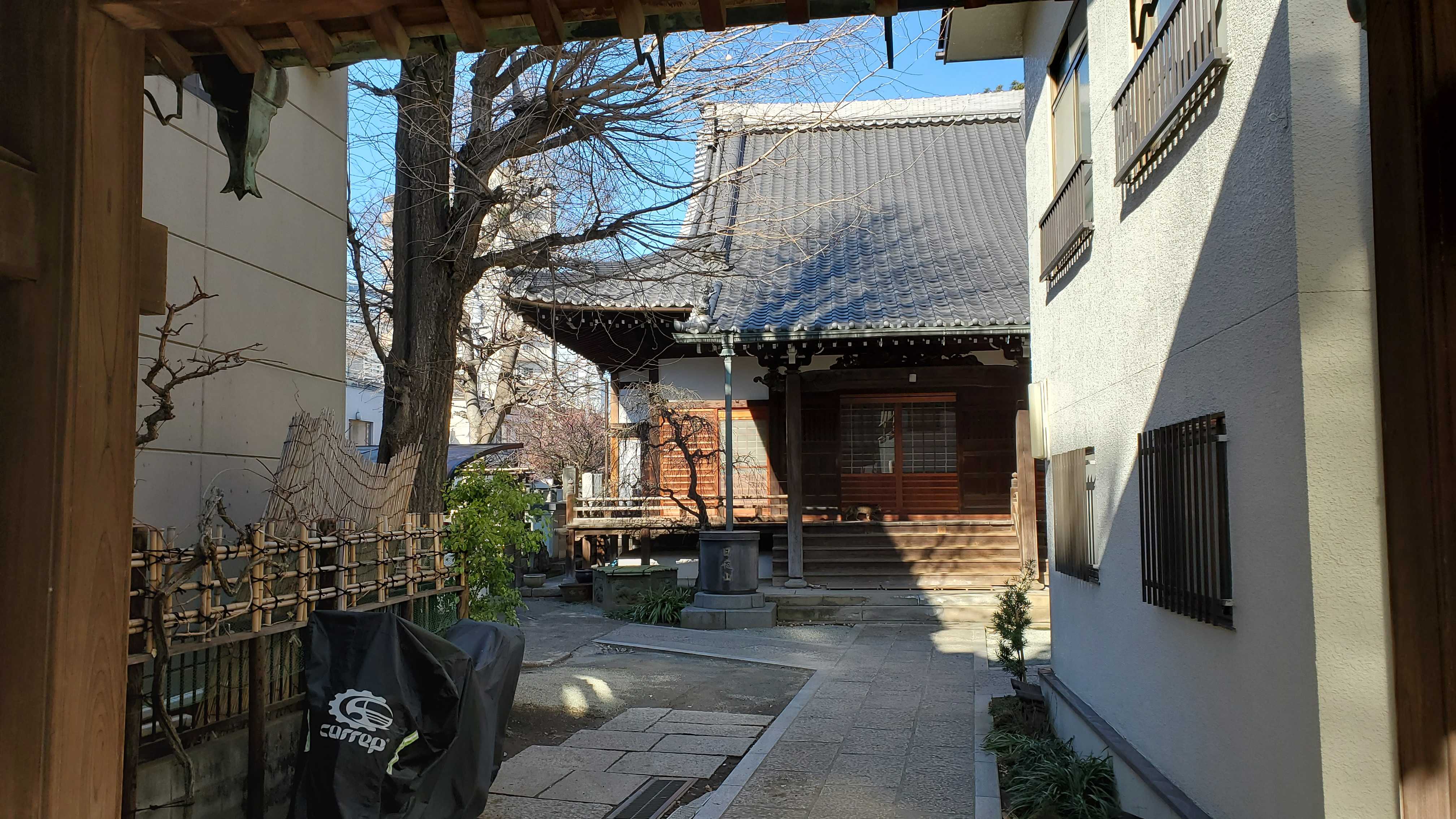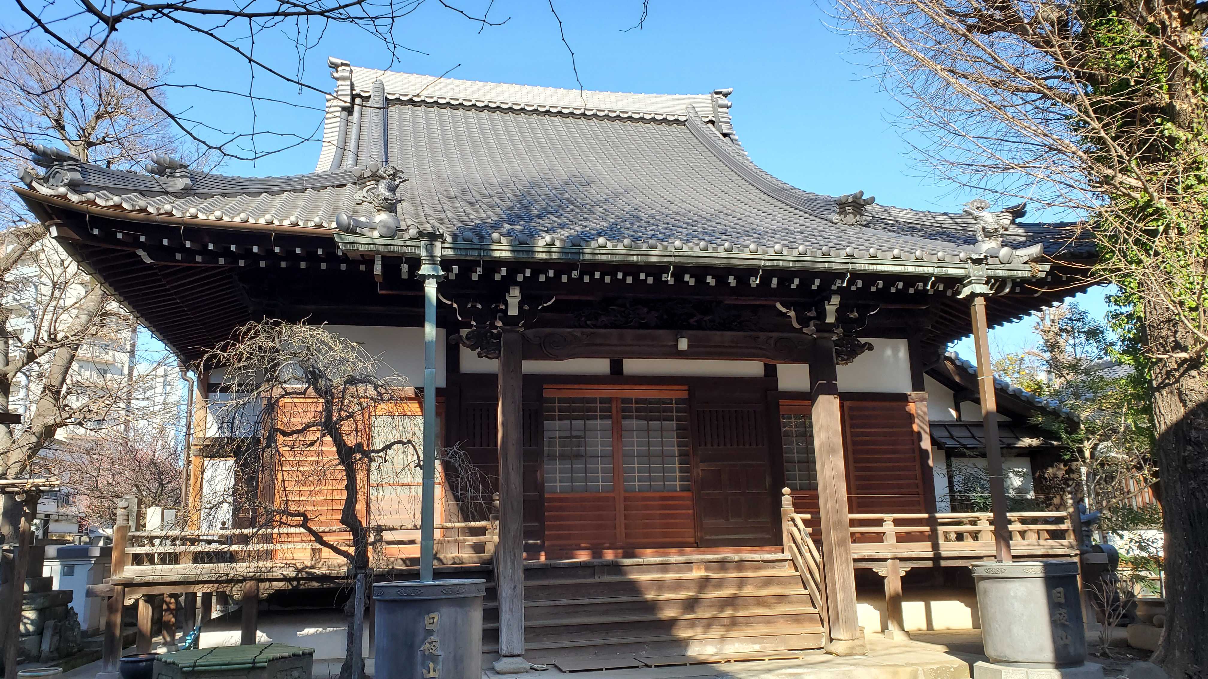 正德寺本堂……平家の落ち武者であったと伝えられる善永坊春應が、永仁6年(1298年)に現在の品川八ッ山に開基。当時は大日山香華院善永寺と号し、真言宗のお寺。その後の元亀2年(1571年)に現在の品川宿北馬場の地に移り、延宝3年(1685年)に浄土真宗本願寺派に改宗し「日夜山正德寺」と名を変える。さらに、正徳2年(1712年)に真宗大谷派に転派し現在に至っているそうです。もちろん本山は京都の真宗本廟(東本願寺)。忙しかったでしょうが、やっと落ち着いて良かったですね。