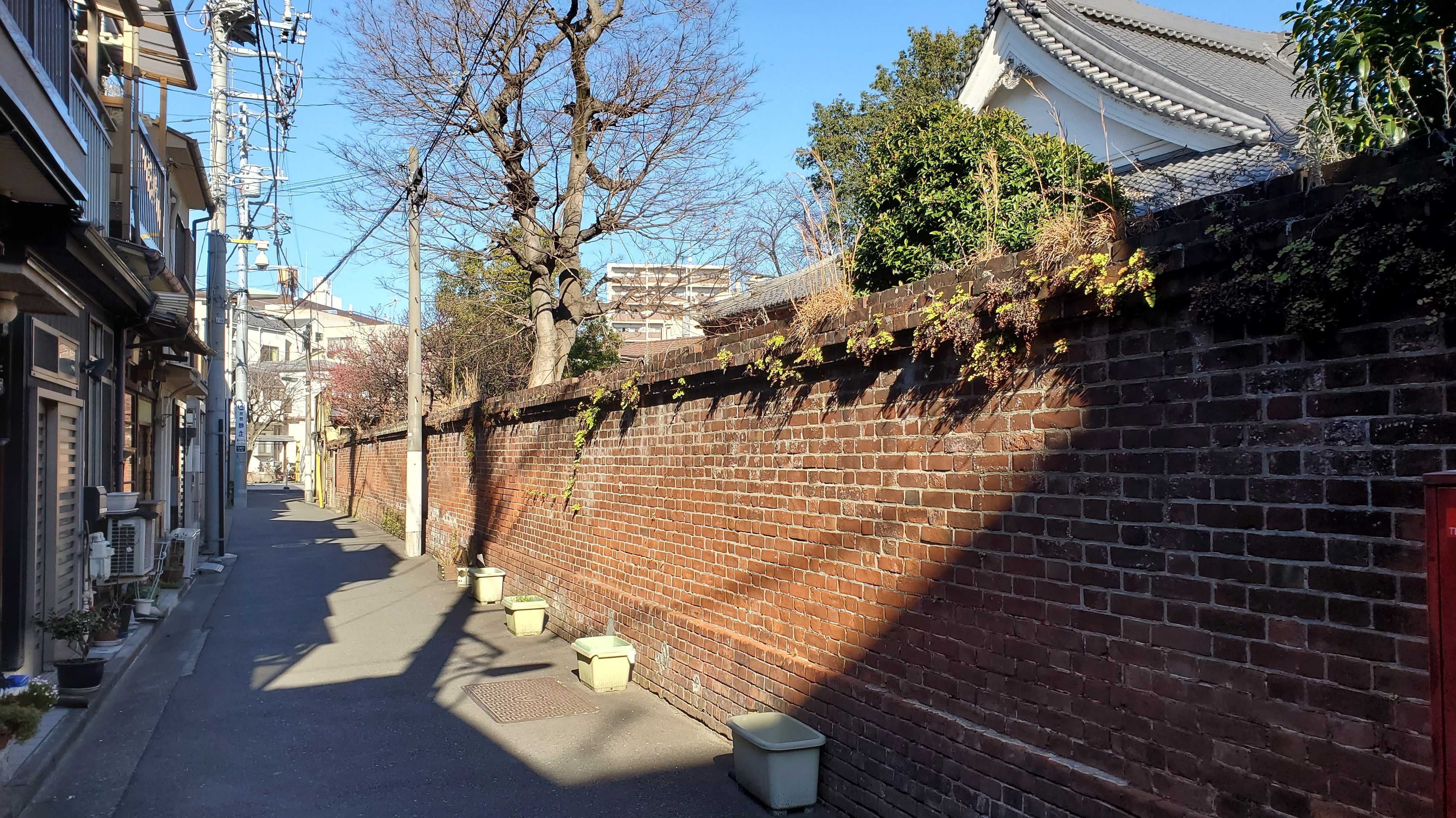 正徳寺の横あたりはレンガ塀……フランス積みって言うらしい。イギリス積みもあるんだってさ~