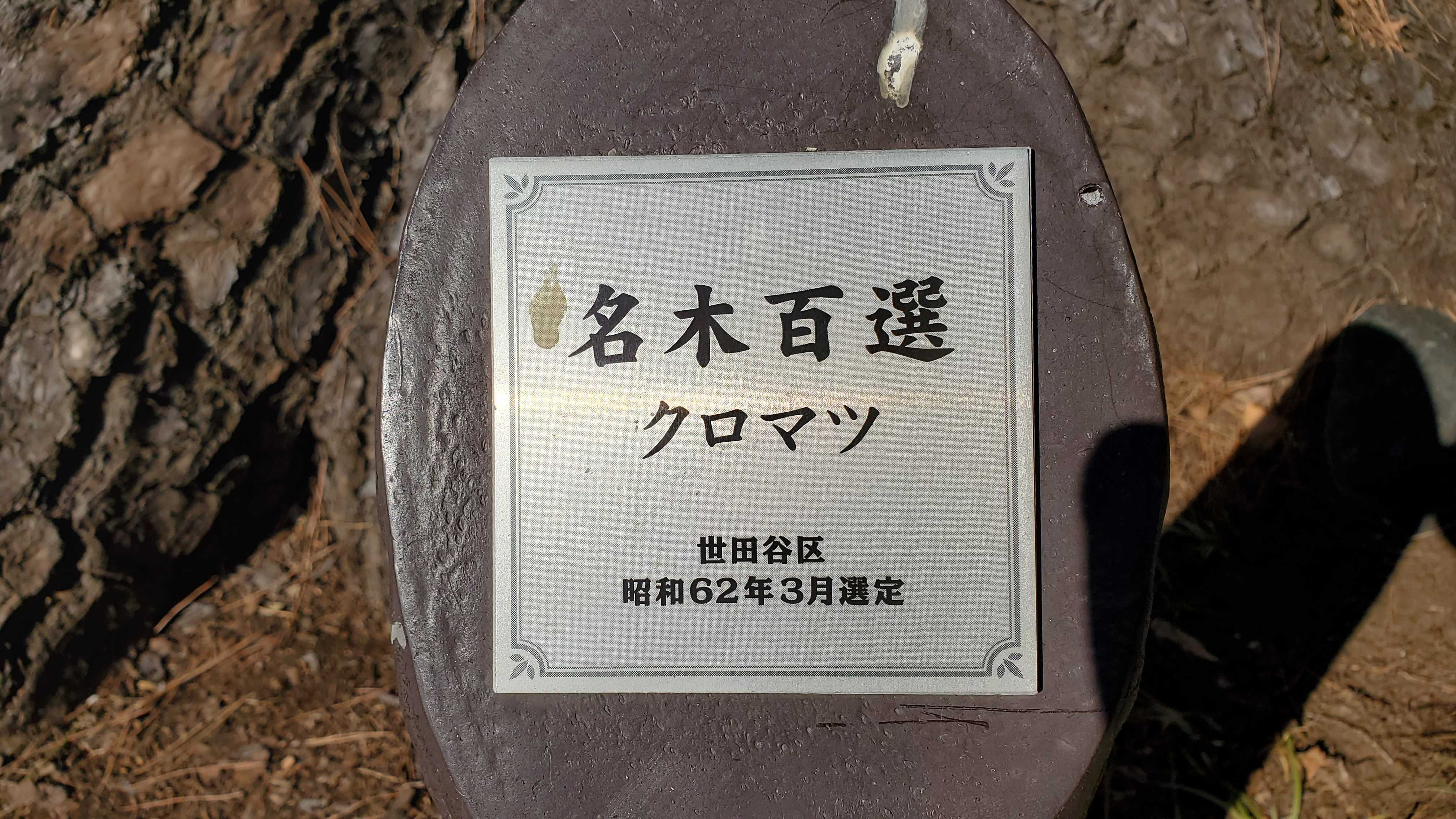 世田谷の名木百選……百と言っても150件の名木が再選定されているようです。今度マップもらってこようかしら……このクロマツは40番