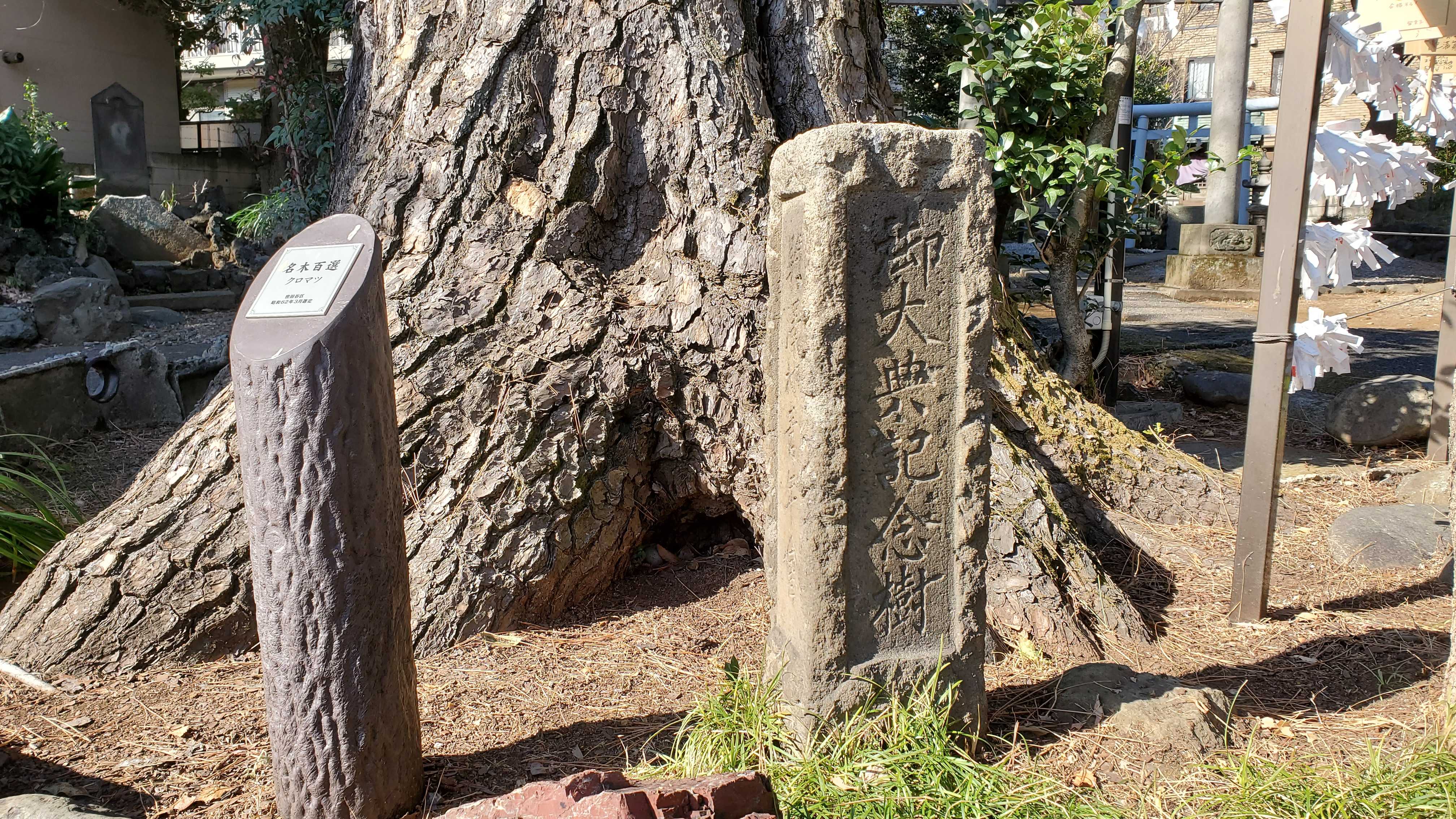 御大典記念樹……どなたの? 大正天皇の御大典記念でした。大正4年(1915年)11月10日に駒沢村 青年会により植樹されたそうです。