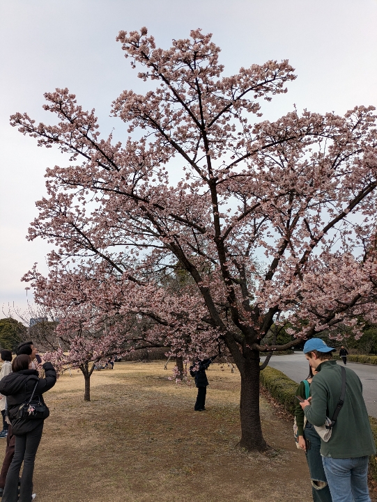 早咲きの桜の周りに吸い寄せられる海外からの観光客🌸