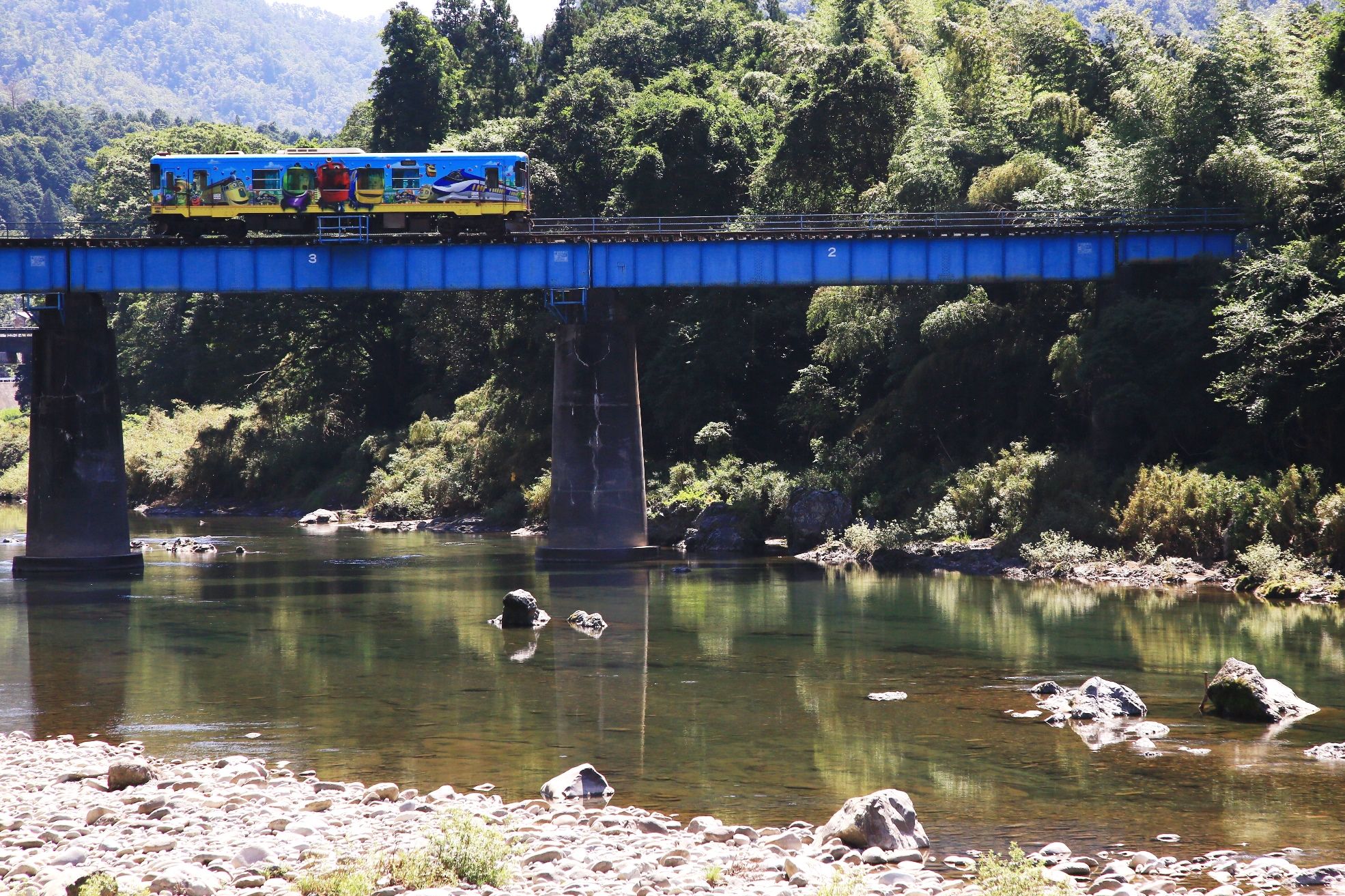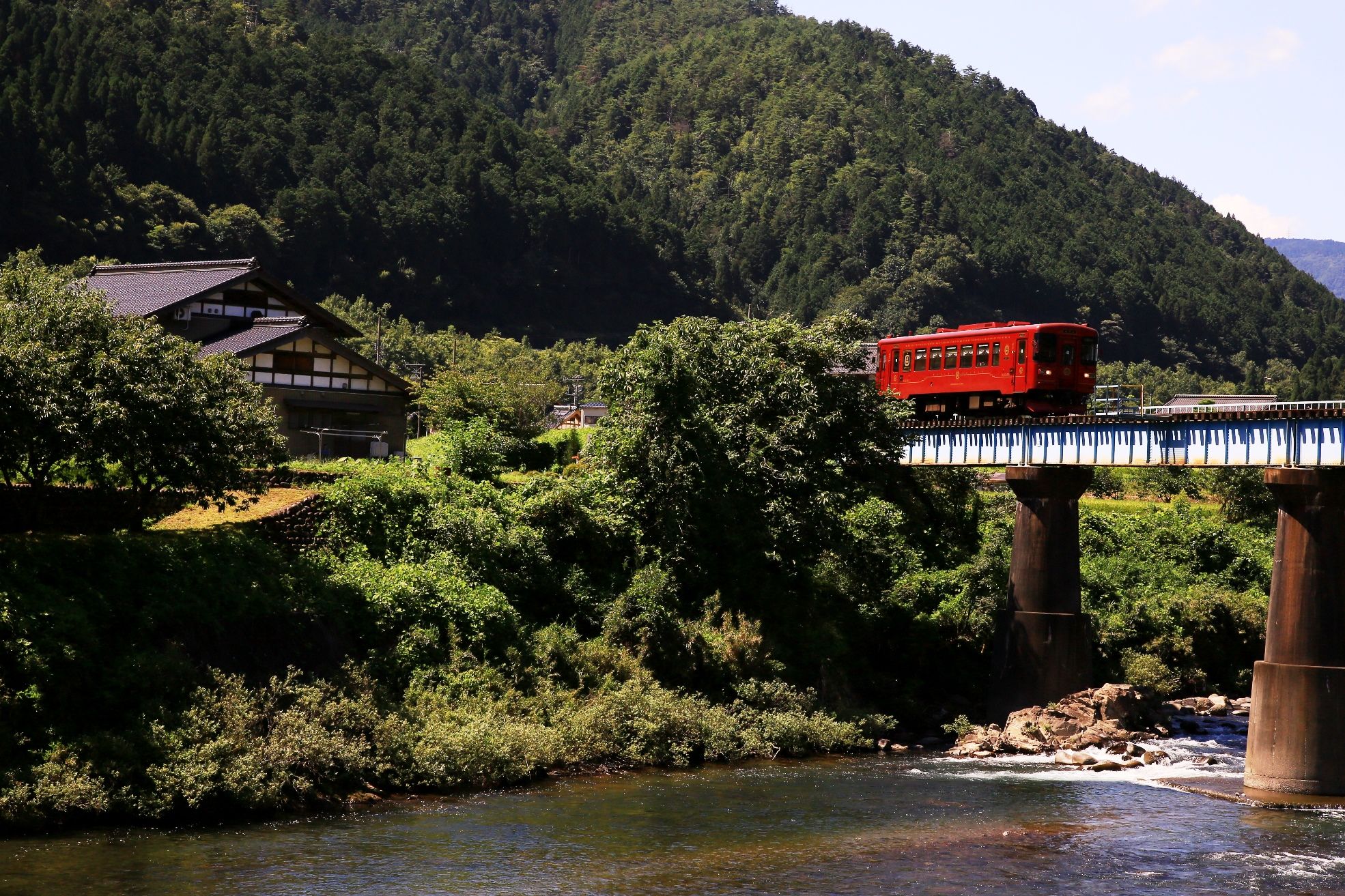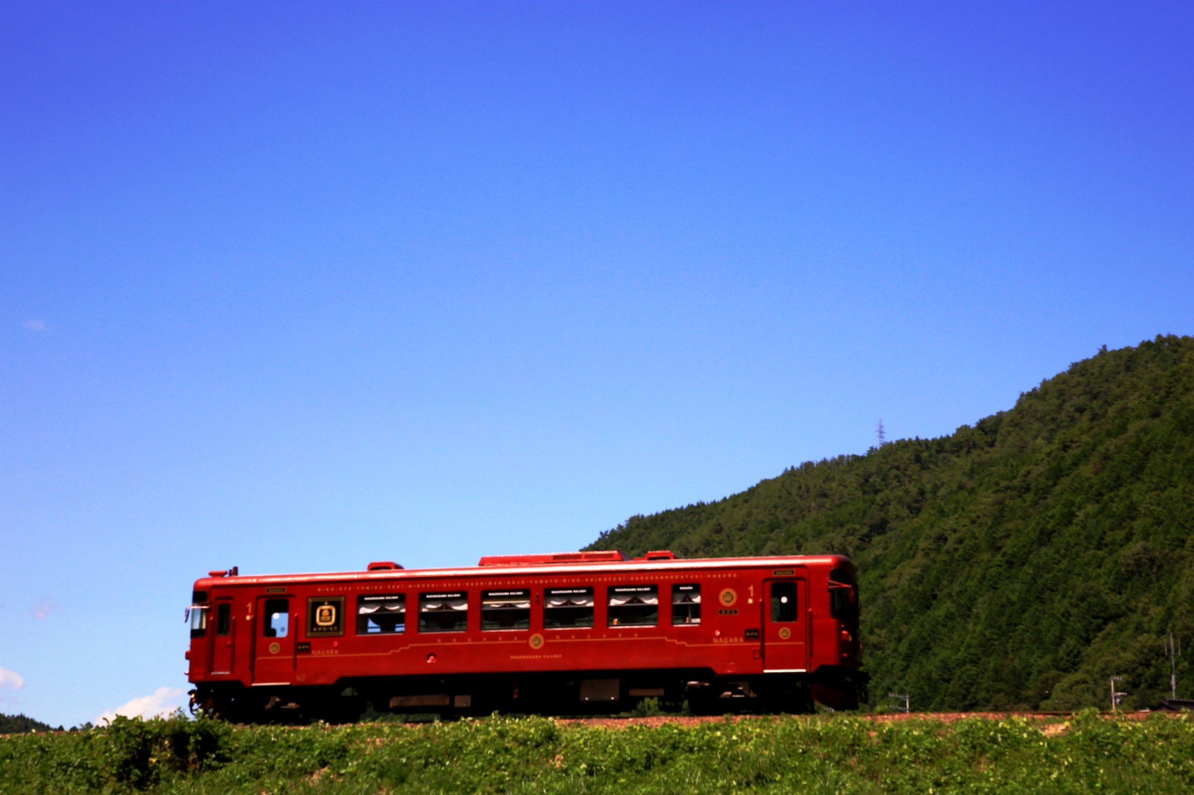 真っ青な夏空と、観光列車”ながら”。。 とても暑かったですが(;・∀・) (トリミングあり)