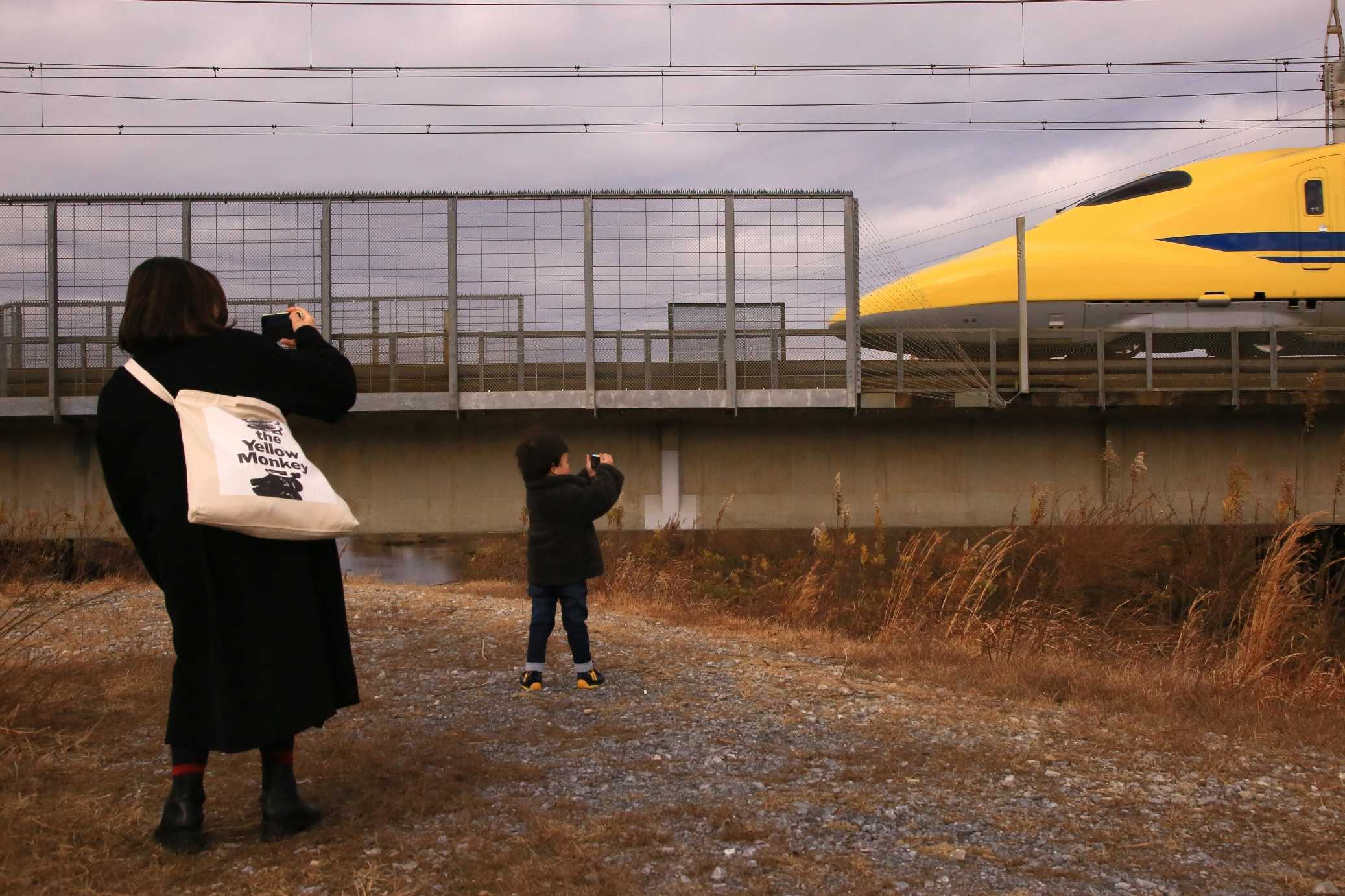 先日も、ドクターイエローを撮りに行きましたが、雪は無く、、、伊吹山も雲に隠れて、どうしようかと、ここにやってきたら、、、暫くすると、お母さんと小さなカメラマンが登場!!