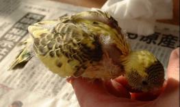 か・・買ってしまった~セキセイインコのヒナ!近くに大型ホームセンターがオープンしたので今日行ってみました。やはり、すご~く混んでましたね~。ここのホームセンターはペットコーナーが充実していて、生体もたくさん売っていました。メインはワンちゃん、パピヨン・チワワなどなど・・小鳥さんも成鳥ペアセットで売っていて、カナリヤ・文鳥・キンカン鳥・ボタンインコ・コザクラインコ・オカメインコのノーマルペア、ルチノーペアなんてのもいました。しかしオカメの太っていることといったら!我が家のオカメ達の1.5倍はあるでしょう!(もしかして2倍?)しかも無表情・・手乗りでないインコって表情がないんですねえ、なんとなく寂しい気分に・・チラシで300円!のセキセイインコのヒナ限定50羽というのは売り切れていました。チラシを見たとき300円なんて激安で買っていった人はおもちゃ感覚のお客さんもいるんだろうなあとブルーな気分になりました。(そんなに激安だときっと弱いヒナも多いと思います)1羽だけヒナがいました~セキセイインコのヒナです!(税込1,980円)お客さんはひっきりなしにヒナかわいい~と言ってガラスをガンガンたたいていきます・・ヒナは餌くれると思ってヒャ~ヒャ~鳴いている。ヒナ疲れるだろうなあ~しかも夜9時まで営業だし・・がんがん明るいし、オープンでやたら客は多いし、明日は日曜でまた混む・・よし連れて帰ろう!4羽目のインコのお迎えです♪カゴ4つになっちゃうなあ~お店の人はフォーミュラーと粟玉を混ぜて与えていたのでそうしてください。と言ってましたが、粟玉はヒナにとって消化に悪い・・栄養もない。フォーミュラーだけ与えました・・すごくおいしかったらしく、食べるわ食べるわ・・止めようと思うくらい喜んで食べました。そして、電気アンカを入れた水槽の中でグーグー気持ちよさそうに寝ています。名前なんてつけようかなあ。