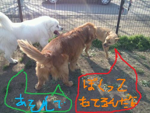 昨日、ぼくたちが泊まりにいっているとき、お父さんがゴロウ、ハナを大間木ドッグランに連れて行ってくれました。お友達のわんちゃんは少なかったみたいですが、途中から大型犬のシャネルくん、ラブくんが入ってきて、ゴロウと一緒に遊んでいたそうです。ゴロウはドッグランではモテモテなんですが、その間、ハナはポツンとしています。今度、ランに行くときはぼくがハナちゃんとたくさん遊んであげようと思いました。