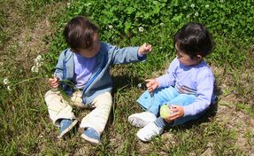 ただいまです。いぷ~です。やっと長い徳島帰省から帰ってまいりましたぁはふー!妹のJr.Kと実母、弟といぷ~一家の珍道中でした(妹は仕事&8ヶ月妊婦なこともあり、お留守番)5月3,4,5の予定が一日延びて、6日に帰宅。その間観光にでることもなく、親戚のお宅をまわってひたすらご馳走をいただきましたいやー、もう夕飯ドロボー状態ですw帰りも自作のお米や、おみやげや、たくさん持たせてもらって、申し訳なかった位一番の目的はひいおばあさんにひ孫を見せることだったので、それはとりあえず達成できましたが(^^;びっくりしたのは、親戚の子の長男の初節句のお祝い顔を出した程度なのですが、職場や親戚が集まり、地元の名産を取り寄せての大宴会。段飾りの武者よろいの他に、人形ケースが7つも8つも並べられて、張子のトラやら、お祝いのお酒やら、飾られていました。去年の3月生まれなので、本当は去年が初だったけど、小さすぎるので、今年にしたっていうのもナットク。これではみんなに構われるのに、小さすぎては主役はつとまらないもんね。後で聞いた話では、親戚たちが各々人形を贈るしきたりだそうで。へー!って感心しながらも、もったいないよねーって思う都会人いぷ~。もしかしたら、寄っていくかもしれないと聞いて、手ぶらではなんなので、例のワンコのバスポンチョを持参したのだけど、そんなレベルじゃ、あってもなくても変わらなかったよね~orz← オトコ二人でクローバー摘みの図
