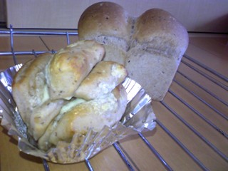 いよいよ来週今年初のkinari cafe*がありますペーパークイリングの講習はMIKIさんのセンスの良さがとっても表れていると思いますホントに素敵で。。。一度ペーパークイリングの繊細さを体験してみてくださいね私のパン講習のテーマが『ヘルシーパンで正月太り解消!?』なので只今試作の真っ只中ですいつものとおりギリギリにならないと講習のパンが決まらない私う~~~ん。ヘルシーと言えば・・・みなさんお楽しみに~~~そしてこの日記のテーマ。。。試作中なのにヘルシーパンではなくおいしいリッチなパンを作っている私。マスカルポーネがたくさんあったので入れてみたりぬってみたり焼き芋を中に入れてみたりカブの葉を生地に練りこんでみたりカブの食パンはうすいキミドリできれいな色なのですが画像では・・・いろんなパンを試作中です