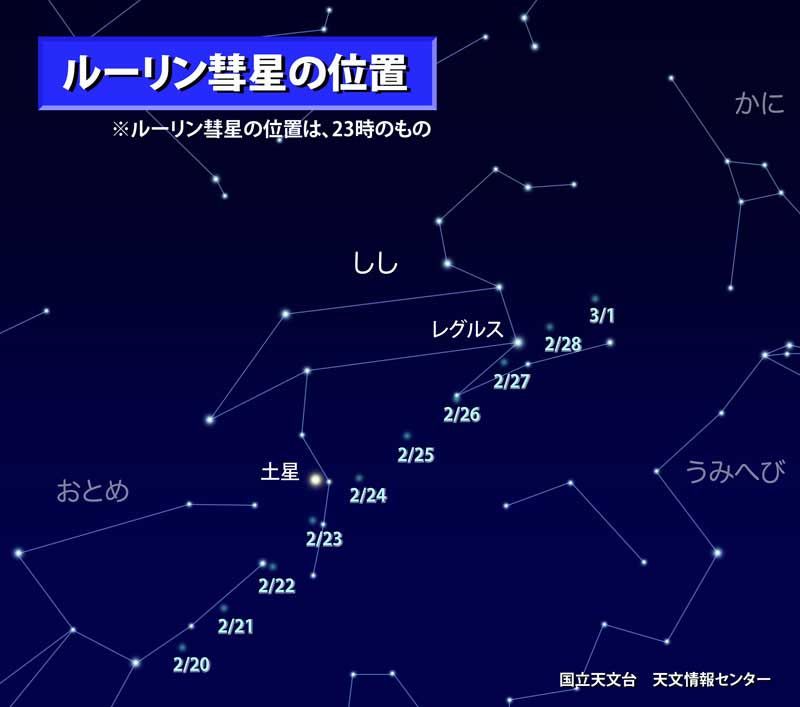 もっとも地球に接近するのが、2月24日ですが、曇っていたり雨だったら観測できない。また、観測条件のいいのは、ルーリン彗星が南天に上がり高度が高くなる深夜から未明ということで、時間と日にちが限られる。