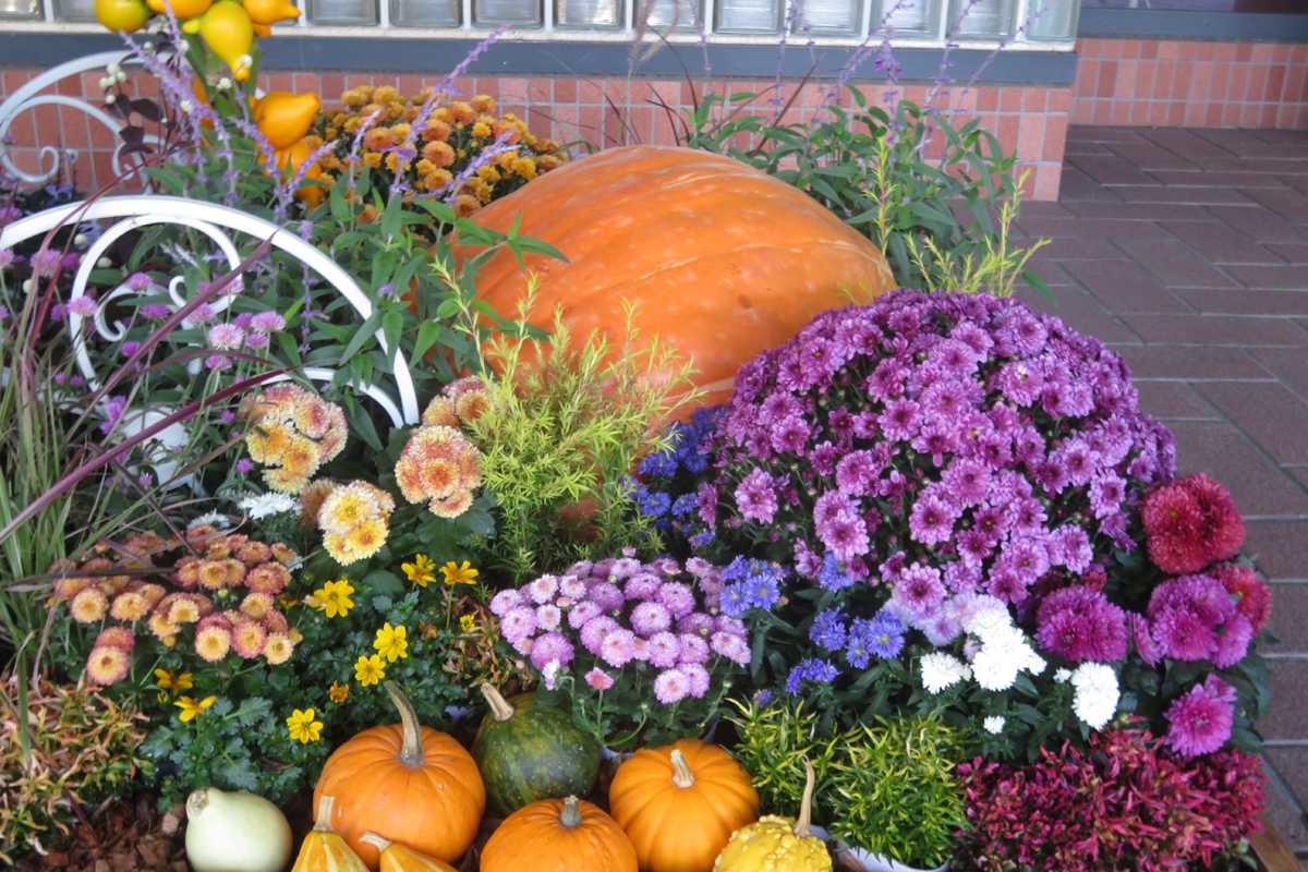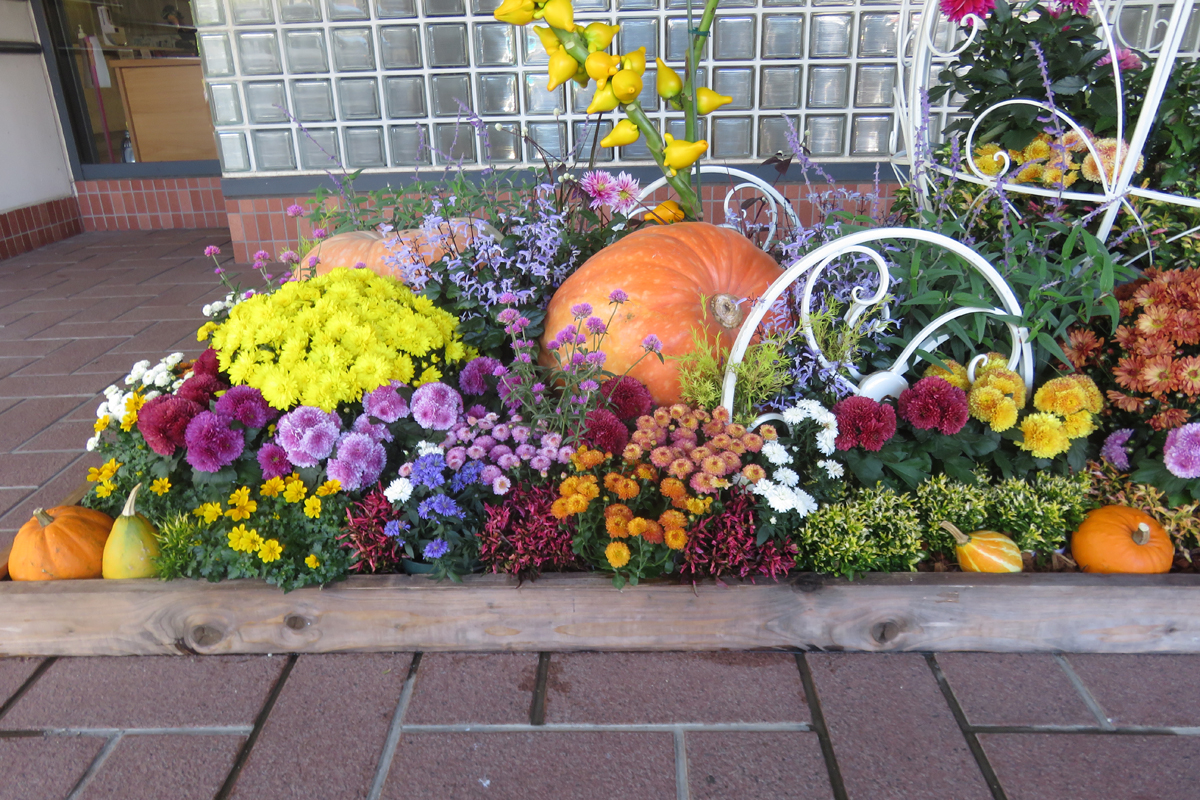 本館の入口横にハロウィンの花壇がありました。