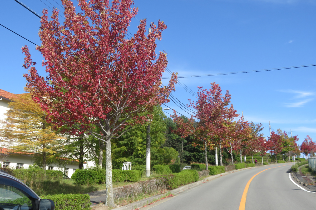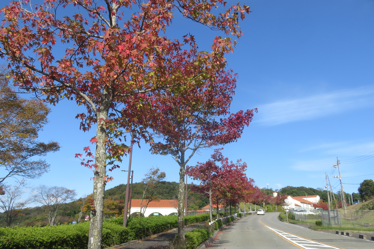 しあわせの村とひよどり台の団地との間の街路樹。