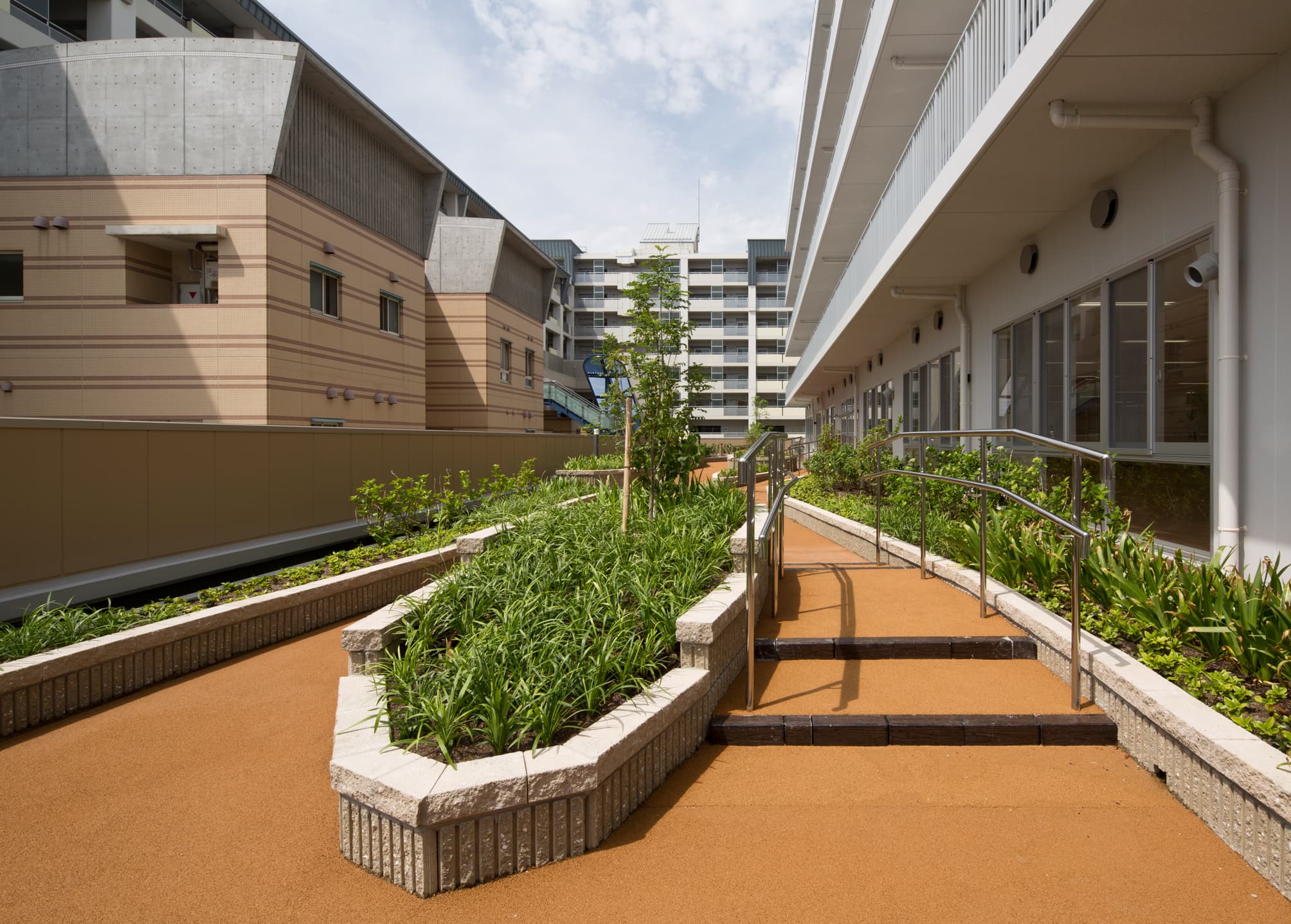 最後に、歩行車で中庭に出ました。良いお天気で気持ちが良いです。段差も試しました。
