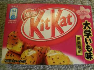 あなたは信じますか・・・キットカットに「大学いも」があることを・・・家庭でも手軽に作れるおやつである大学いもをキットカットで表現この時期にしか楽しむことの出来ないキットカット大学いも味をお楽しみ下さいそう来たか~怪しそうだけど期間限定だし買ってしまった渚納豆味とかじゃなければ買うで~今年も頑張れネスレ