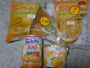 今日の夜食のデザートは何にしよう仕事帰りにイオンに寄り道今日はマックスデーじゃないので無駄使いは出来ない・・・店内を物色すること5分(たったの5分かい)遂に見つけた半額消費期限は今日じゃん。でも大丈夫、今から食べるからマンゴーだらけやな買ったのはマンゴーシュークリームとマンゴーワッフル。の冷蔵庫に偶然に入ってたマンゴーヨーグルトとマンゴージュース支払いは株主優待のイオンカードで3%オフにしようと思ったけどイオン従業員カードで5%オフ120円のお買い上げ120円をクレジットしてきた渚って