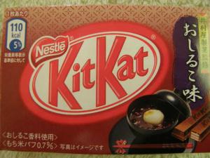 静かなお正月や~正月らしくこれでも食べるか「ネスレ キットカット おしるこ味」(期間限定?)小豆にこだわりを持つ井村屋製菓の小豆パウダーを使用する事により、本格的な味に仕上げました。また「もち米パフ」をチョコレートに練りこみ、焼いた餅の香ばしさを表現する事により、おしるこの味わいをイメージさせる仕上げとなっております おお~おしるこの味や~でも、意外と美味しいさすがに井村屋とのコラボだけある。みなさんはもう食べましたよね今年もキットカットいけるで~伝説のキットカットを探し求める渚ですそしてついに・・・