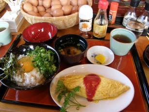 みなさま、更新できなくて本当にすみません更新どころかカキコの返信すらしてないし・・・辛うじて生きてますのでご心配なく※メッセージ、メールなど心配してくれたみなさん、ありがとう昨日は久々の土曜日の休みいつものように子供達とランチへ出かける・・・それも朝の9時頃から「あまたラーメン食べに高速代使ってまで食べに行くんですね」ってみなさん思いでしょうが今回は渚の大好きな「セレブ料理」を子供達と上戸彩さんで食べるこんな最高の贅沢は他には無いだろう渚のから北へ80キロ。京都府と兵庫県の県境にある町へで2時間。到着すること大行列で1時間待ちランチの時間過ぎておやつの時間になるやんここまで来て退く事は出来るはずも無く待つそして究極のセレブ料理がそうです。「タマゴ掛けご飯」です(画像はタマゴ掛け定食とオムレツです。)ここの店はなんと「タマゴ掛けご飯」専門店なんです「卵かけご飯」というシンプルなメニューだからこそ、養鶏場を営む店主・西垣源正さん(ゲンチャンタマゴ)がつくる素材へのこだわりは並々なりませんはしで持ち上げられるしっかりした黄身の「クリタマ」と、甘みのある「夢ごこち」というお米は相性抜群昔ながらの懐かしい味わいで、地元のみならず遠方からのリピーターもたくさんいます。卵はいくつ使ってもの「卵かけご飯定食」は、汁物、香物がついて350円。(おかわりも大盛りも出来ます)専用のしょう油は5種類の中から選べます。薬味はネギと海苔サイドメニューの手作りオムレツやケーキ、プリンも人気キターって感じですタマゴ食べ放題で6個も食べた食べ放題に弱い渚です。皆さんも食べすぎ注意やでまた行ってみようっと