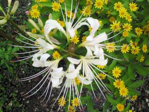 ヒガンバナ(彼岸花)はヒガンバナ科ヒガンバナ属の多年草。マンジュシャゲ(曼珠沙華)とも呼ばれてます 今年も花壇にいくつかの白い彼岸花が咲きました引越しする時にはこの球根を忘れないようにしないと・・・新しいの花壇には白い彼岸花をいっぱいにしたい夢もある。子供の頃は赤い彼岸花を持って帰ると親に叱られたことがあるが火事になるって・・・彼岸花は有毒性の植物なのでここからそういう言い伝えが来てるのだろうと思いますが白い彼岸花は珍しく赤い彼岸花とは違って人気が高いようです白い彼岸花咲き~の。白い彼岸花いっぱい咲き~の。何日かすると赤いストライプが入って綺麗な白い彼岸花。でも咲いてる期間が短いのが残念ですね・・・白い彼岸花に赤いストライプ入り~の。嫁ぎ~のやっぱりこう来る渚です。