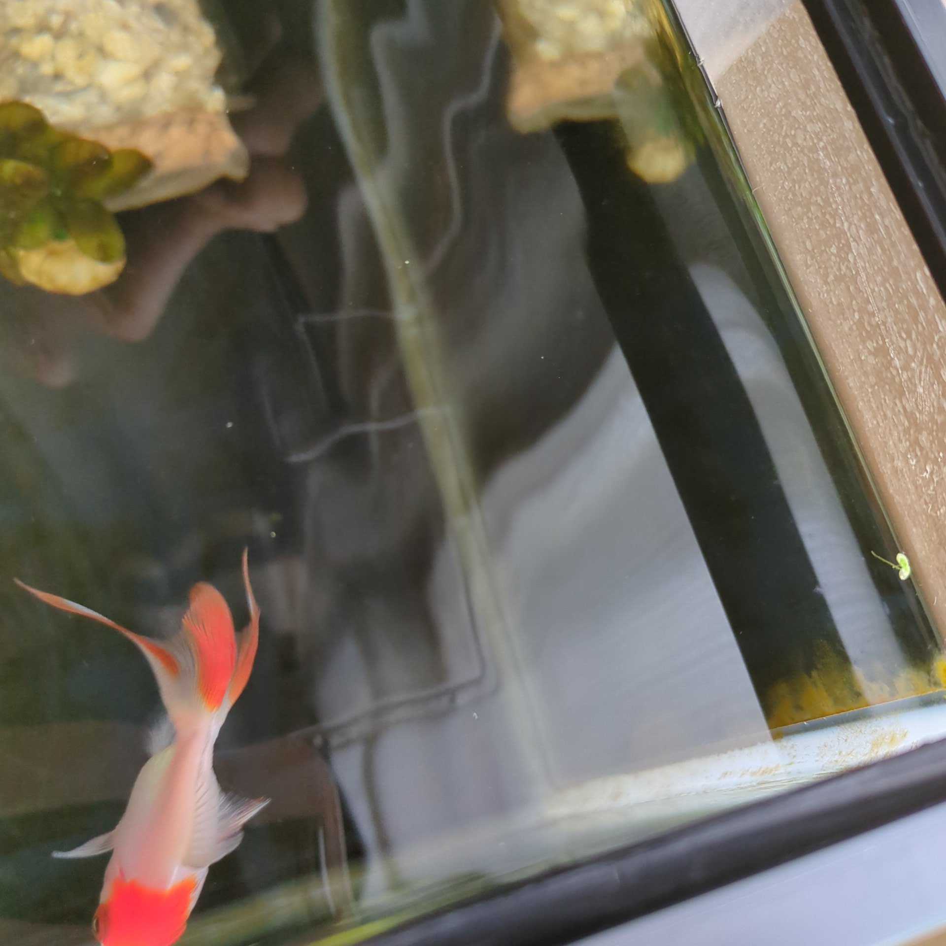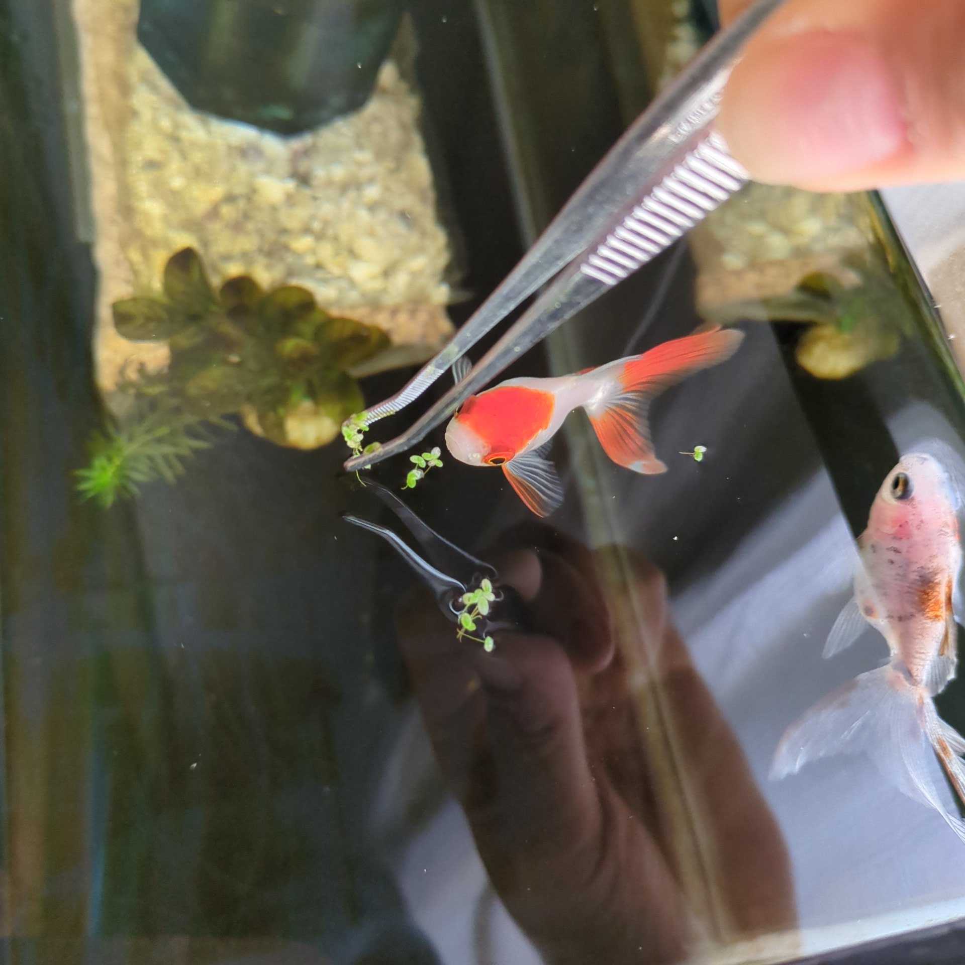 アオウキクサは意外と根が長いので、もっと大きな金魚ならともかく、