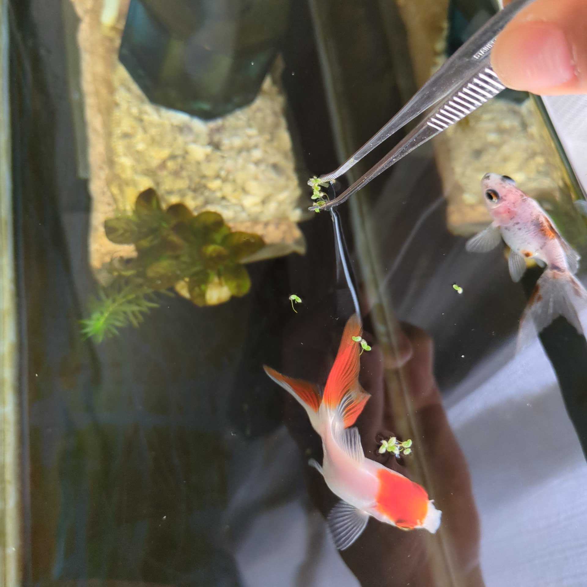 もらった時の倍くらいに増えたので、これを金魚たちに与えてみます。