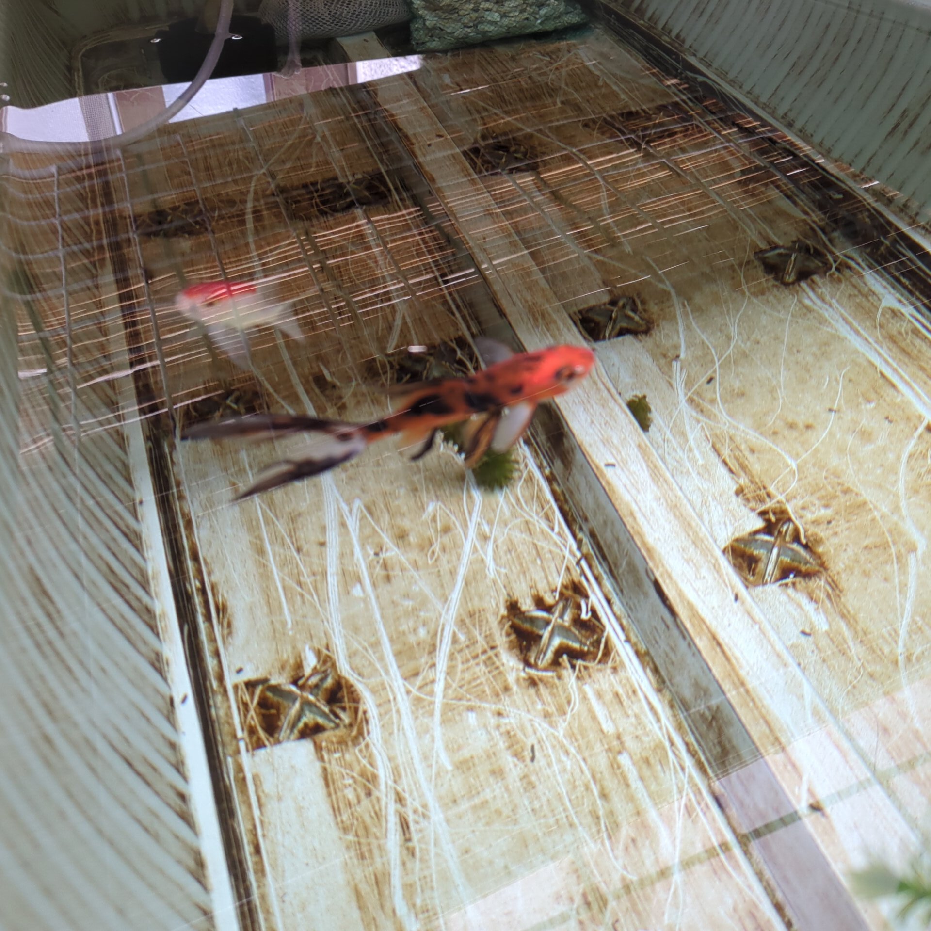 ところで、​ この間お迎えした2匹の金魚 ​の睡蓮鉢には