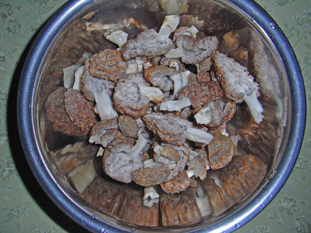 先日採ったアミガサタケ。トガリアミガサなのか、アミガサタケなのか結局同定できませんでした。虫出ししてキレイにしてから乾燥するつもりでした。でも、珍しく虫が入っていなくて状態がいいものばかり・・・。やっぱり初物は食べなくちゃ・・・と、きのこスパゲティを作る事に。でも、ニンニクは乾燥していて使い物になりません。ニンニク抜きのスパゲティではせっかくのアミガサタケが勿体無い・・どうしよう?棚の中をかき回していると、「きのこの醤油バターソース」というパスタソースが出てきました。先ずオリーブオイルでしっかりアミガサタケを炒めて、白ワインを多めに加えて旨みを引きだすため煮詰めます。その中に、先のパスタソースを入れて、ソースの出来上がり。インスタントを使っちゃったから味もそれなりかな~と思いながら食べましたが、たっぷり入れたアミガサタケの旨みが効いていました。でも、アミガサタケ自体の食感は、好みの分かれる所です。残りの半分は乾燥して保存しました。朝の曇天が嘘のように晴れてきたので、WBCが終ったらお墓参りに出かけます。