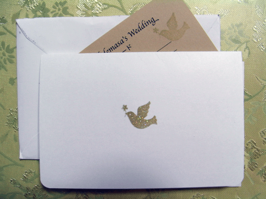 恵みの雨で蕾がふくらみ、萌え出てきた緑がほどけるように広がる春の午後。ほんとに春を迎えた友人から一通の封書が届いた。えっ・・ほんと!うわぁ・・やったー普通の封筒より大きめのそれは、結婚式の招待状。丁寧に封をあけて、読み進むうちに、私の心の中の色がフワ~リと変わっていく。それまで夕食のメニュー、明日の予定などで、心の色は落ち着いたグリーン系、それが、肌に柔らかくあたる霧が入れ替わるかのように、パステルカラーの明るい色のグラデーションの世界に・・・・。なぜそんなに嬉しいのかって・・・。だって彼女、ここに書きはしないけど、私と○歳違い。でも、見かけは、育ちの良さをうかがわせる穏やかさで、ドレスを着るとお嬢さんみたい・・。ドレスを着る・・・そう、彼女はプロのシンガーソングライターなのです。そして、海外に仕事(こちらは別の仕事)に出かけては、町並み、山河の風景を撮ってきて写真展をするなどマルチな人でもある。久~~しぶりに受け取った春の便りは、ここ数日小さな出来事でしっくりいっていなかった私達の心をも、軽く暖かなものに変えてくれました。
