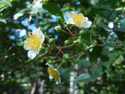 台風の影響もさほど感じられない林道脇に、待ち焦がれた野ばらが咲き始めていました。花の大きさ、色合いは個体差があり、それを比べながら観賞するのも楽しみのひとつ。写真の野ばらの木をじっくり観察したのは初めてで、花が大きいようです。今年の「お気に入り花畑」は色合いが乏しくて、一面ヒメジョオンやヒヨドリバナの白い花が風に揺れております。大好きなヒヨドリバナを求めてアサギマダラが集まっていました。林道から離れていたので、コンデジの撮影ではこれが限界です。先週に続いてハナビラタケもそこそこ見つかります。今回も小さい個体は残してきました、再度同じ場所に行きつけるかどうか。採らないと決めるとかえって目につくタマゴタケ。タマゴの状態からカサを広げたものまで多く見かけます。10本ほどが斜面を駆け降りるように連なっておりました。涼しい木蔭で仲間たちと暫し歓談して、いつものように早めの撤収。次回は少し標高を上げて散策したいです。