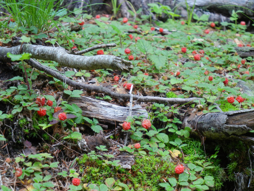 先日は、ベニバナ探訪しながらしっかり地面も見渡してきました。小粒ながらここまで群生していると、いちご畑も見応えがあります。遠目にも分かる大きなハナビラタケ。出始めの小さいものは、「大きくなぁれ」とじゅ文をかけて置いてきました。標高がある場所に今頃出るのは、ハルナラタケ或いは秋に採れるナラタケ?…どちらに分類したらいいのでしょう。近くには株立ったものもありました。コガネヤマドリタケやアメリカウラベニ等イグチ類も見かけましたが、そろそろ姿を見せるタマゴタケはいずこに。郷の花々の開花は早いと言われているようですが、4日の山は肌寒いほど。梅雨寒が一段落したら、紅色のカサを開いてくれるかな。一面ヒヨドリバナが揺れているお花畑には、アサギマダラもふわりふわりと舞っていました。樹林は植生循環に時間を要しますが、その点草花の循環は短時間で、数年で生命力があるものに入れ替わるのを見ることができます。ヒヨドリバナが幅を効かせ始めたのは昨年から、数年後はどんな花畑に変化するか楽しみです。