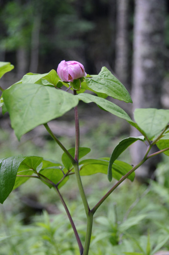 「ベニバナヤマシャクヤク恋しい~」という私の気持ちを察してくださった無茶1さんが、大切にされてきた開花ポイントを教えてくださいました。「あの場所を過ぎて、カーブを曲がり、ほら、あそこに車を止めて・・・」と。道や山をある程度分かっていましたので、目星をつけてのベニバナ探索。「たぶん此処」という山中。緑あふれかえる斜面に、ポワァと灯りがともったようなベニバナが佇んでいます。早朝なら開いていた花びらは、大切なものを包み込むようにふんわりと閉じ始めており、そうっと手のひらを添えたくなるような風情。勿論触れることなく写真だけでしたが・・・。おかけさまで、感激のひと時を過ごすことができました。今も目を瞑ると、凛としながらも可愛らしい立ち姿をはっきりと思い出せます。無茶1さん、ありがとうございました。