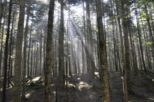 這うように斜面を登っていくと、廃頽と新生の景色が・・・何度歩いても、森の中の景色は見飽きることがありません。柔らかい木漏れ日を受ける苔。音符のような花から、メロディが聴こえてきそう。ギンリョウソウが見られる今の時期が、きのこ人にとっては期待が膨らむ一番いい季節です。タマゴタケのタマゴ発見、しかも大きい。以前は白い膜を剥いで紅色を確認したものですが、今はそのままそこに。こんな感じでタマゴタケがでていました。我が家は食菌として採っていないので、撮るだけ。頼まれた時だけ、数本持ち帰ります。しっとりと濡れた樹林に期待しましたが、アンズタケは二カ所で見ただけ。アンズタケやヤマドリタケは乾き気味のほうが元気がいいようです。「そろそろ時間を延長した散策を」と欲をだしたら、後半に軽い熱中症のような症状が出て、急いで車に戻り保冷剤で体を冷やしました。秋の本番に向けて、ゆっくり体を慣らしていったほうがいいようです。