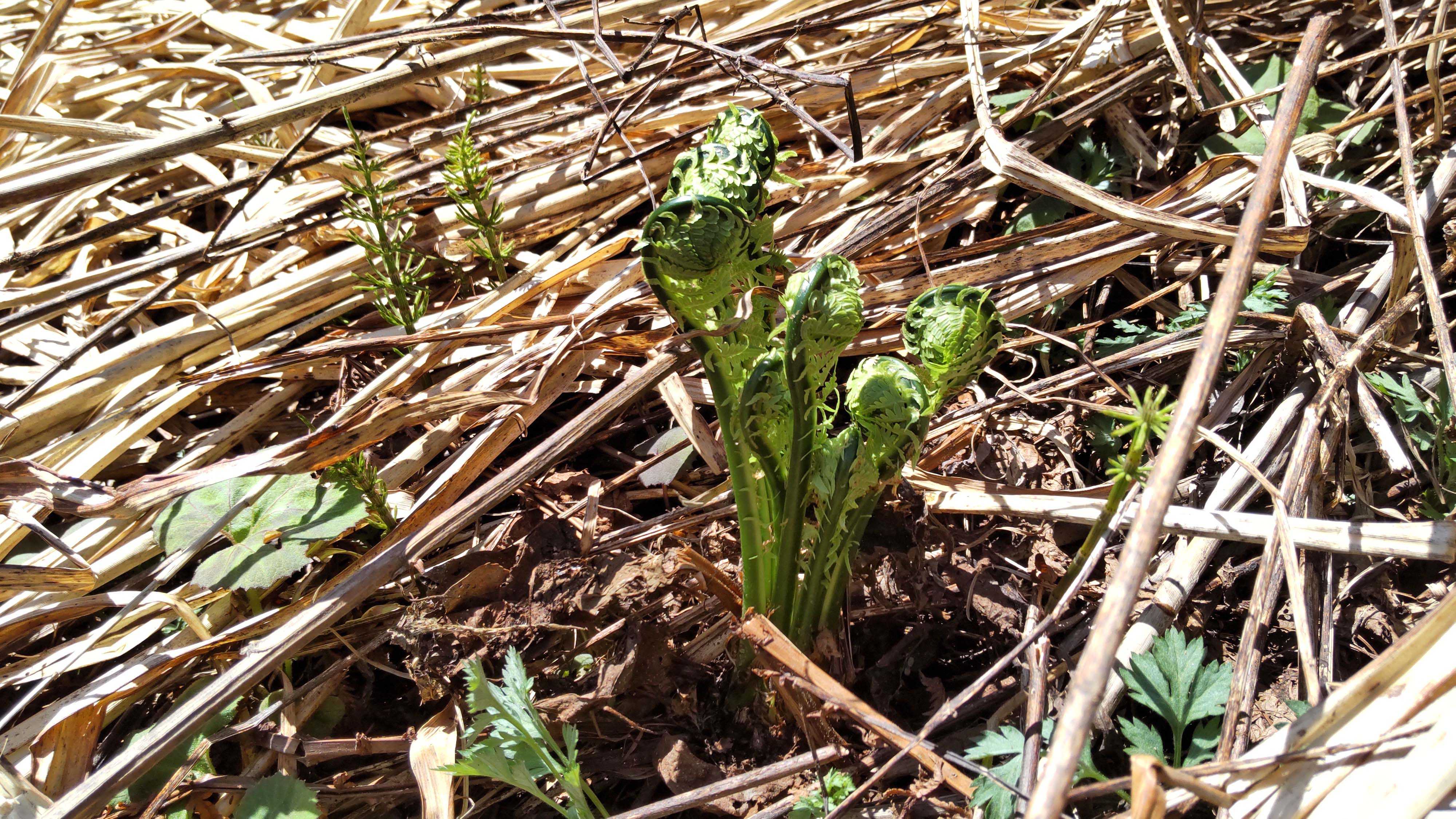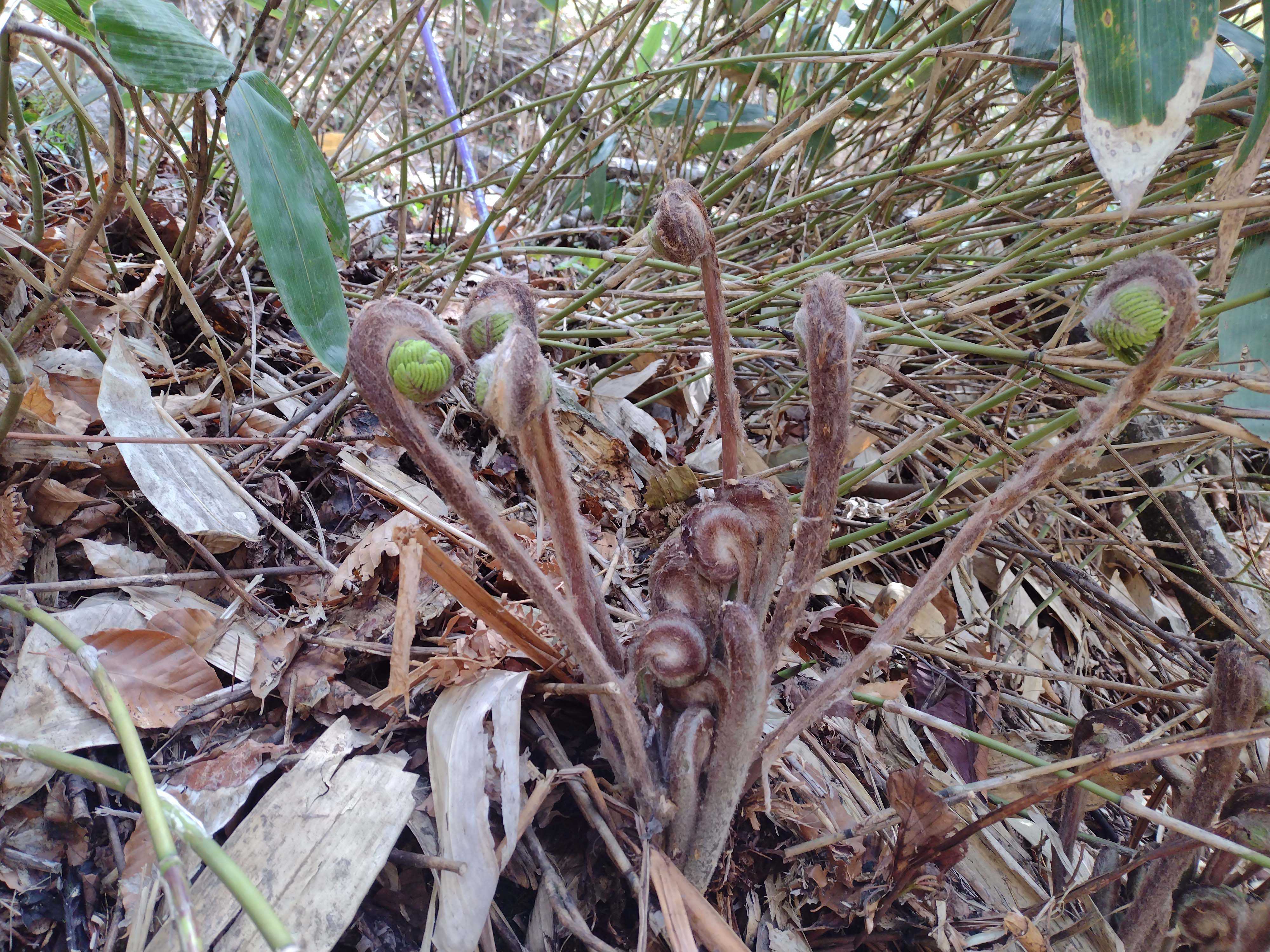 先に出てきた胞子葉に守られるように出てきたゼンマイ。